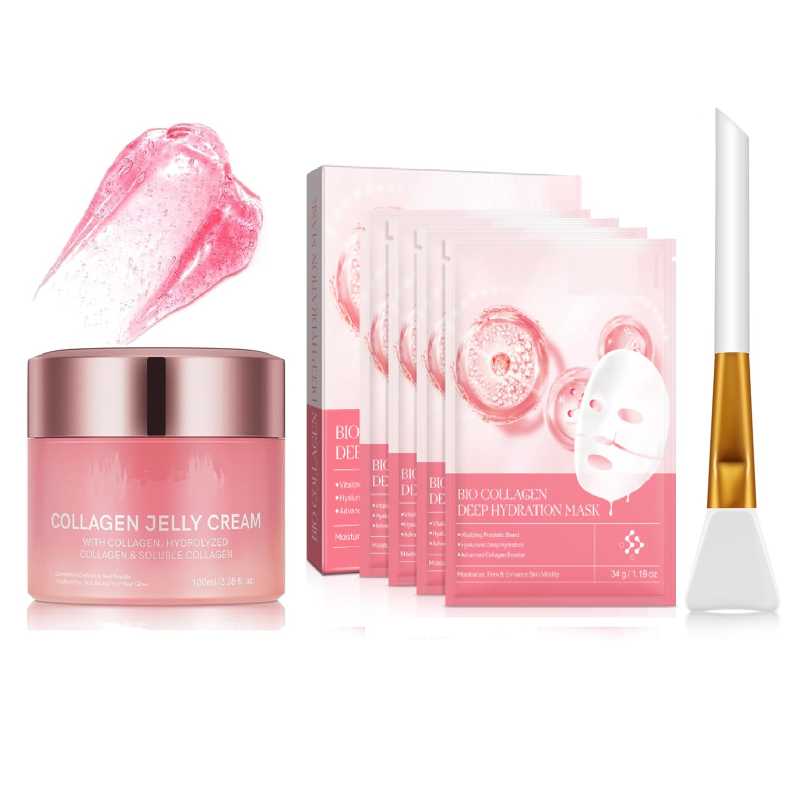 Suitable for all skin types: Our collagen mask is suitable for all skin types, whether oily, dry, or combination. Prolonged use effectively brightens the complexion and says goodbye to dull, dry skin. Non-sensitive and non-irritating, it allows the skin to breathe freely. Directions for use: Cleanse and dry your face, apply an appropriate amount of the mask to your face, avoiding the eyes and lips, and wait approximately 15 minutes before removing the mask. Do not leave the mask on for extended periods. Use in the evening for best results. Deep hydration: The collagen mask penetrates the superficial layer of the skin, deeply hydrating it, improving its elasticity, firming it, and leaving it moisturized and smooth. It helps facial skin achieve a healthy moisture balance. Brightens and hydrates: Improves skin protection and hydration, increases radiance, reduces dullness and pigmentation, diminishes wrinkles and fine lines, creating healthy, hydrated skin. Collagen mask: Highly effective moisturizer, effectively retains moisture, reduces wrinkles, and slows the aging process. Whitens the skin, leaving it white, delicate, and elastic, shrinks pores, penetrates deeply into the lower layer of the skin, and repairs damage.4PCS Masque de nuit de collagène, crème de gélatine de collagène, masque d'hydrols-collagène, élasticité et hydratation, renforcement de pore, lissage et raffermissement 2Convient à tous les types de peau : notre masque de collagène convient à tous les types de peau, grasse, sèche ou mixte. L'utilisation prolongée illumine efficacement le teint de la peau et dit adieu à la peau terne et sèche. Non sensible et non irritant, laisse respirer librement la peau. Instructions d'utilisation : nettoyer et sécher le visage, appliquer une quantité appropriée de masque sur le visage, en évitant les yeux et les lèvres, et attendre environ 15 minutes avant de retirer le masque. Ne laissez pas le masque pendant de longues périodes. Utilisez le soir pour obtenir les meilleurs résultats. Hydratation profonde : le masque au collagène pénètre dans la couche superficielle de la peau, en l'hydratant en profondeur, en améliorant son élasticité, en le raffermissant et en la laissant hydratée et lisse. Aide la peau du visage à atteindre un équilibre sain d'hydratation. Illumine et hydratation : améliore la protection et l'hydratation de la peau, augmente la luminosité, réduit l'opacité et la pigmentation, réduit les rides et les lignes fines, crée une peau saine et hydratée. Masque au collagène : hydratant hautement efficace, retient efficacement l'humidité, réduit les rides et ralentit le processus de vieillissement. Blanchit la peau, la rendant blanche, délicate et élastique, rétrécit les pores, pénètre profondément dans la couche inférieure de la peau et répare les dommages.