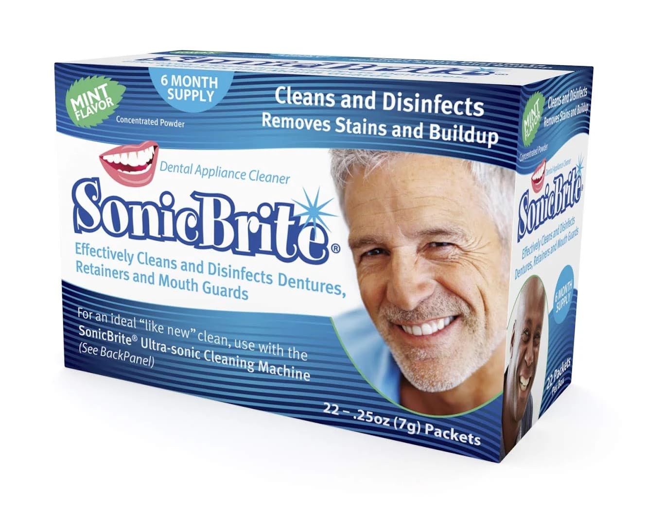 SonicBrite Dental Appliance Cleaning Powder Mint Flavor 6-Month Supply Gently Cleans Retainers Dentures Mouth Guards & Night Guards Easy-Mix Concentrate
