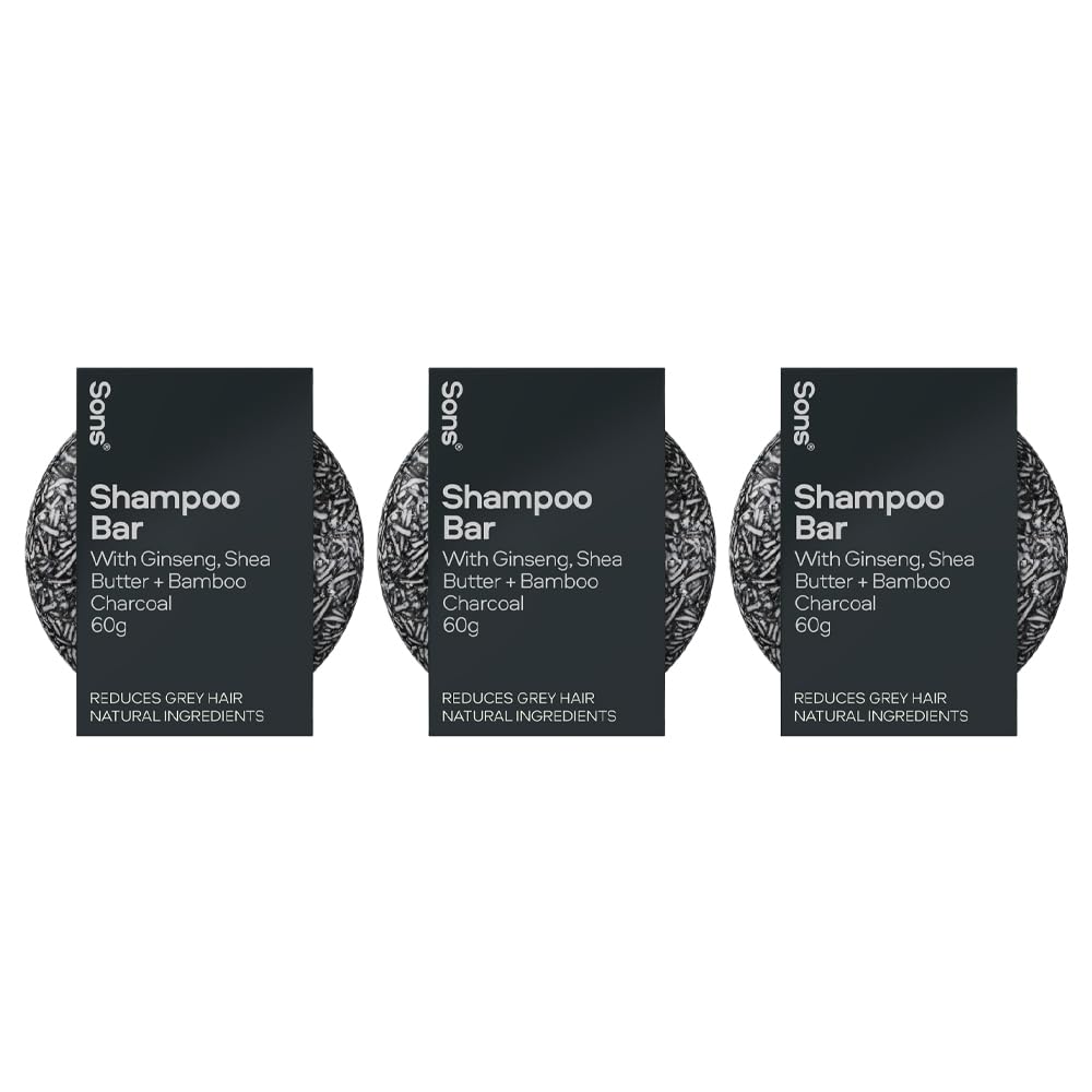 Sons Anti-Gray Shampoo Bar is a cleansing shampoo that reverses the aging process. The herbal scented shampoo bar contains an assortment of ginseng root extract, bamboo charcoal, and shea butter. Ginsenosides are active components along with Ginseng that act as hair pigmentation correcting agents. Hair is left feeling healthy and refreshed. Sons Anti-Gray Shampoo Bar is the solution for men who don't want to dye their gray hair but want to restore their natural hair color. Washing your hair with this shampoo bar helps gray hair return to its original color. The formula activates the melanocytes in your follicles to restore your strands to their natural color and strengthen the pigmentation of your hair and beard.CONTENTS: The plant-based shampoo bar combines ginseng root extract, bamboo charcoal, and shea butter. Ginseng's ginsenosides correct hair pigmentation, leaving hair healthy and refreshed. IS IT GOOD FOR MY HAIR? In addition to reducing gray hair and giving you a more youthful appearance, this shampoo bar cleanses and nourishes your hair and scalp without stripping it of its natural oils, leaving it clean, moisturized, shiny, and invigorated. USAGE Wet your hands and hair, lather the shampoo in your hands, then apply it to your hair and massage for 2-3 minutes. Rinse with warm water. Use daily. AGING PREVENTION: Boost melanin, the hair's natural pigment, with this shampoo designed to stimulate its production. It helps reduce the appearance of white or gray hair and slows down premature aging. HOW IT WORKS - Sons Anti-Gray Hair Solid Shampoo maintains and restores your natural hair color on gray strands by stimulating melanocytes in your follicles to leave vibrant colors. Le shampoing solide anti cheveux gris de Sons est un shampoing nettoyant qui inverse le processus de vieillissement. Le shampoing solide senteur végétale contient un assortiment d'extrait de racine de ginseng, de charbon de bambou et de beurre de karité. Les ginsénosides sont des composants actifs avec le Ginseng qui agissent comme des agents correcteur de la pigmentation capillaire. Les cheveux sont sains et rafraîchis. Le shampoing solide anti cheveux gris de Sons est la solution pour les hommes qui ne veulent pas teindre leurs cheveux gris mais qui veulent retrouver leur couleur de cheveux naturelle. Laver vos cheveux avec ce shampoing solide aide les cheveux gris à retrouver leur couleur d'origine. La formule active les mélanocytes de vos follicules pour rendre à vs mèches leurs couleur naturelle et renforcer la pigmentation de vos cheveux et de votre barbe.CONTENU : Le shampoing solide végétal combine extrait de racine de ginseng, charbon de bambou et beurre de karité. Les ginsénosides du ginseng corrigent la pigmentation capillaire, pour des cheveux sains et rafraîchis. EST-CE BON POUR MES CHEVEUX ? En plus de réduire les cheveux gris et de vous donner une apparence plus jeune, ce shampoing solide nettoie et nourrit vos cheveux et votre cuir chevelu sans lui retirer ses huiles naturelles, il le laisser propre, hydraté, brillant et tonique. USAGE Mouiller vos mains et vos cheveux, faire mousser le shampoing dans vos mains puis l'appliquer sur vos cheveux et masser pendant 2-3 minutes. Rincer à l'eau chaude. Application quotidienne. PRÉVENTION DU VIEILLISSEMENT : Boostez la mélanine, pigment naturel des cheveux, avec ce shampoing conçu pour stimuler sa production. Il aide à réduire l'apparition de cheveux blancs ou gris et ralentit le vieillissement prématuré. FONCTIONNEMENT - Le shampoing solide anti-cheveux gris de Sons maintient et restore votre couleur de cheveux naturelle sur les mèches de cheveux gris en stimulant les mélanocytes dans vos follicules pour laisser des couleurs vibrantes.