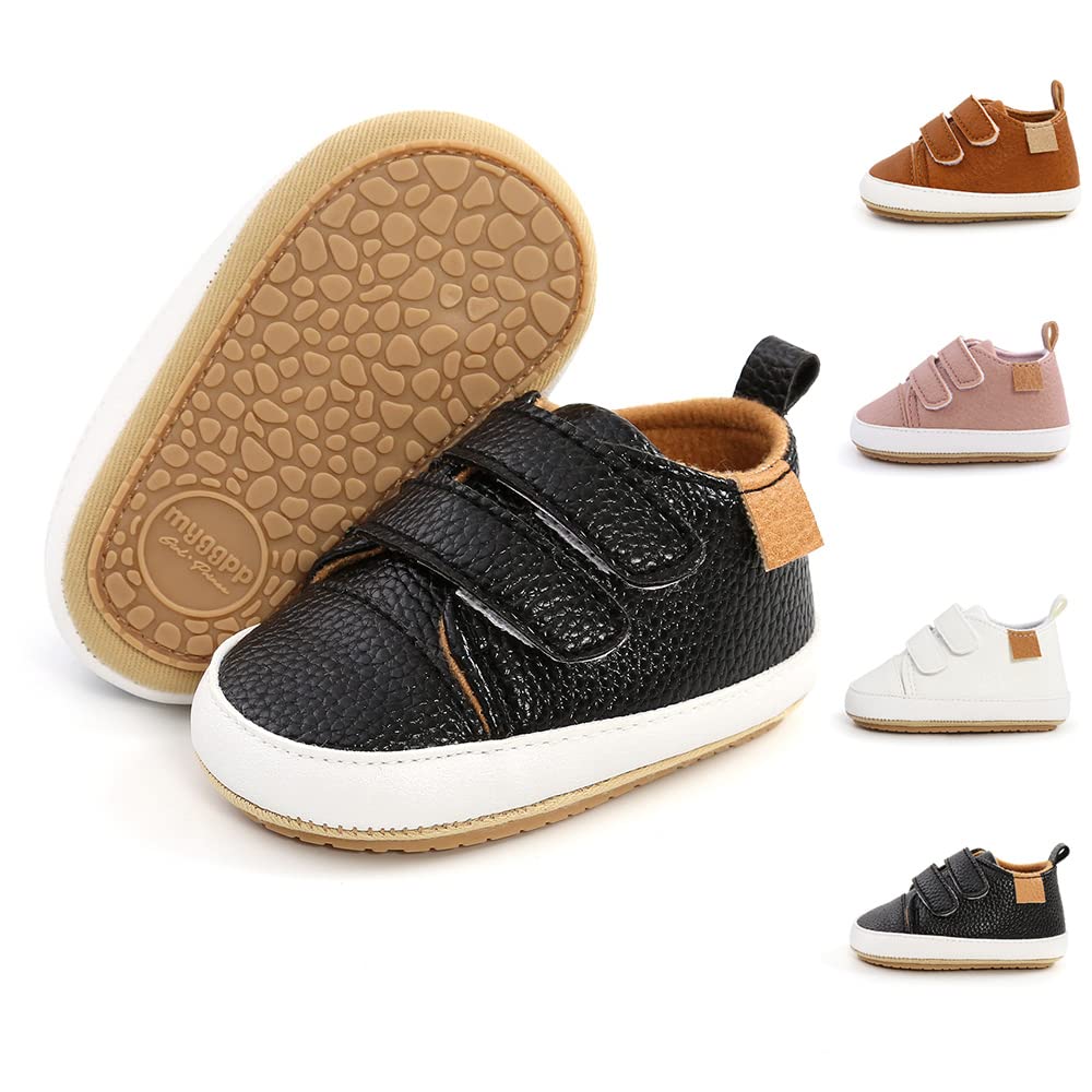 Sonsage Infant Baby Boys Girls Oxford Shoes Pu Leather Lace-Up Anti-Slip Trainer Soft Rubber Sole Toddler First Walking Sneakers 12-18 Months D Black