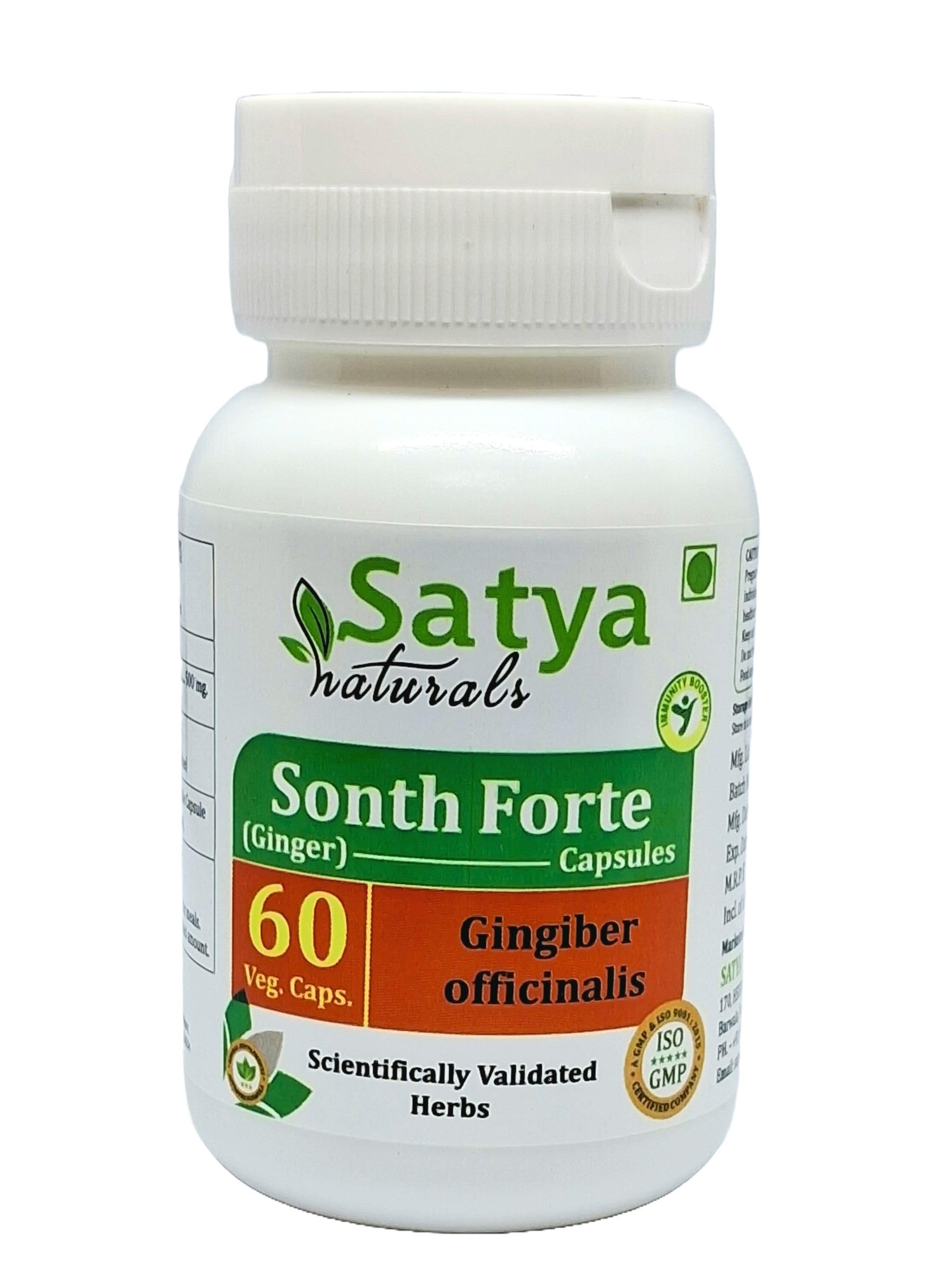 Nourish Your Well-being with Sonth Forte Capsules Satya Naturals brings you a potent dose of Sonth Forte Capsules in convenient vegetarian capsules. Each Capsule delivers 500 mg. of this revered herb, traditionally used in Ayurvedic practices. Features High Potency: 500 mg. per Capsule for a powerful serving. All-Natural: Made with Blended Sonth herb. Vegetarian Capsules: Suitable for a wider range of dietary preferences. Convenient Dosage: 60 Capsules per bottle for a long-lasting supply. Multiple Packs: Stock up or share the benefits with a friend or family member.