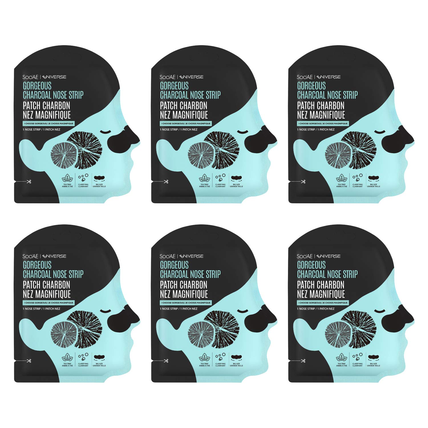 Soo'AE Gorgeous Black Charcoal Nose Strip Oversize - Large Pack of 6 Count - XL Size for Men & Women Blackhead Remover Pore Strips Nose Strips for Instant Blackhead Removal on Oily Skin with Pore Unclogging Natural Charcoal Kaolin Tea Tree Green tea