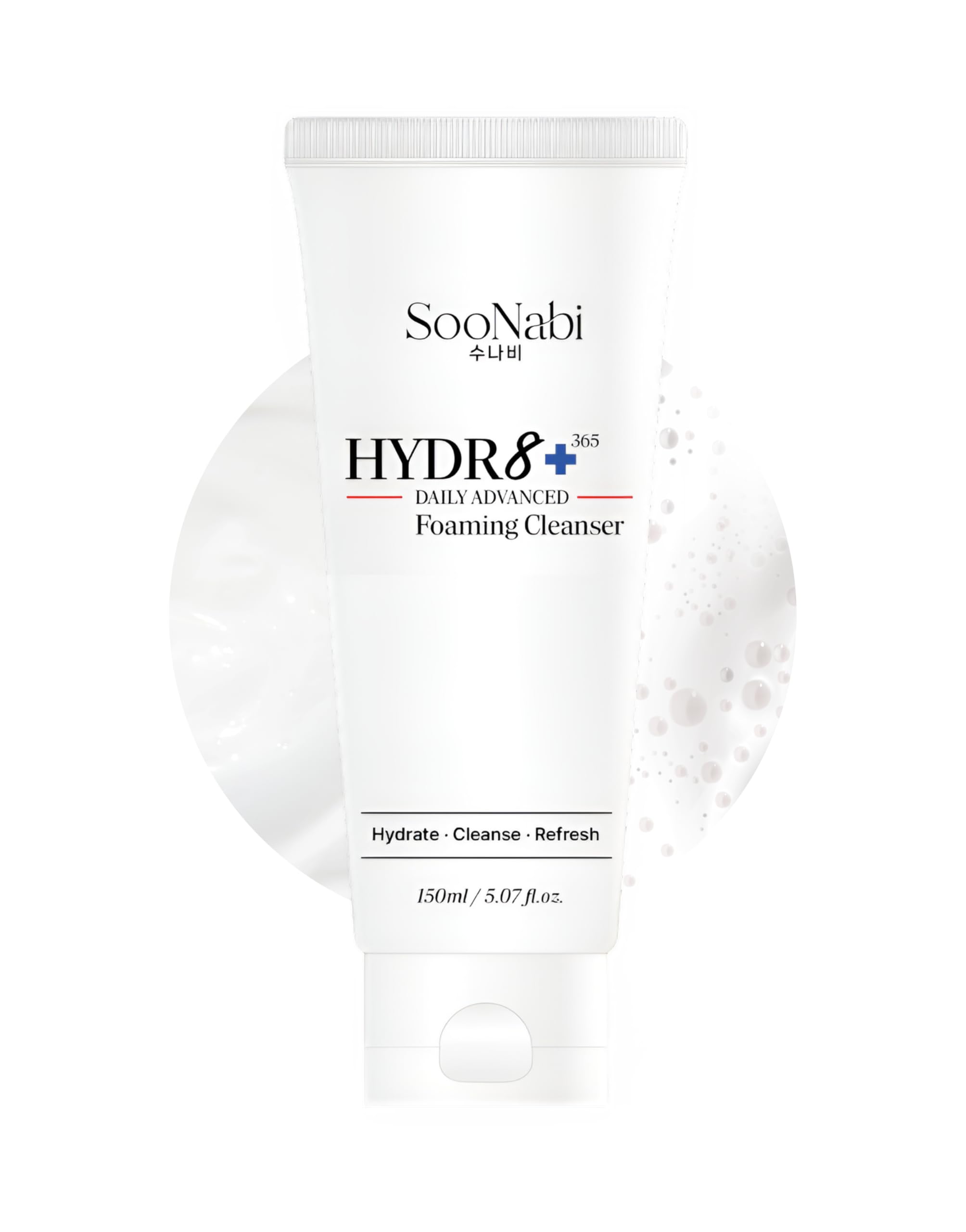 SooNabi HYDR8+ 365 Daily Advanced Foaming Cleanser 150ml Gentle Hydrating Face Wash for All & Sensitive Skin | 7 Types of Hyaluronic Acid NB-P Complex Beta-Glucan Panthenol | Vegan | pH Balanced