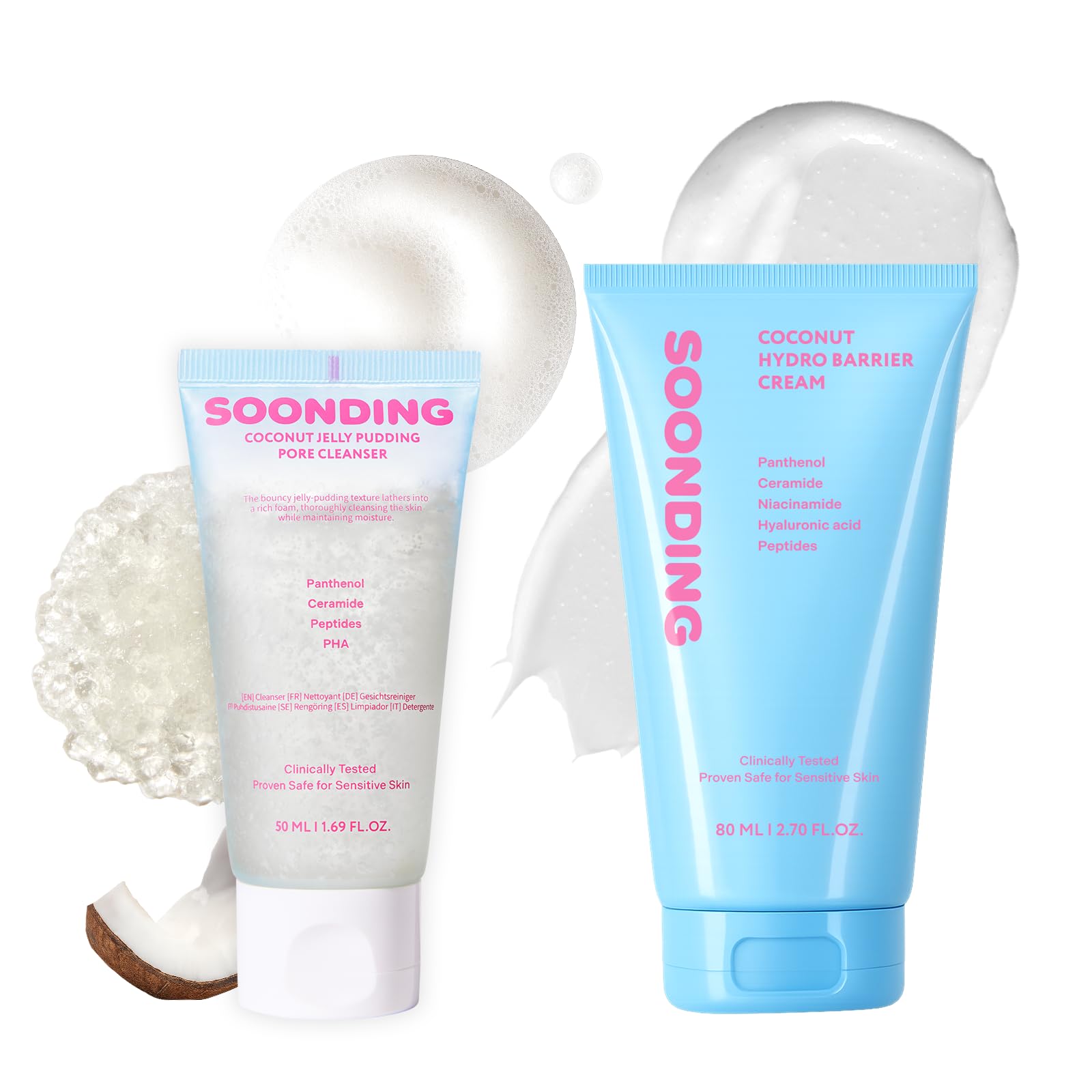 SOONDING | Coconut Jelly Pudding Pore Cleanser (50ml / 1.69 fl oz) + Coconut Hydro Barrier Cream (80ml / 2.7 fl oz) Duo