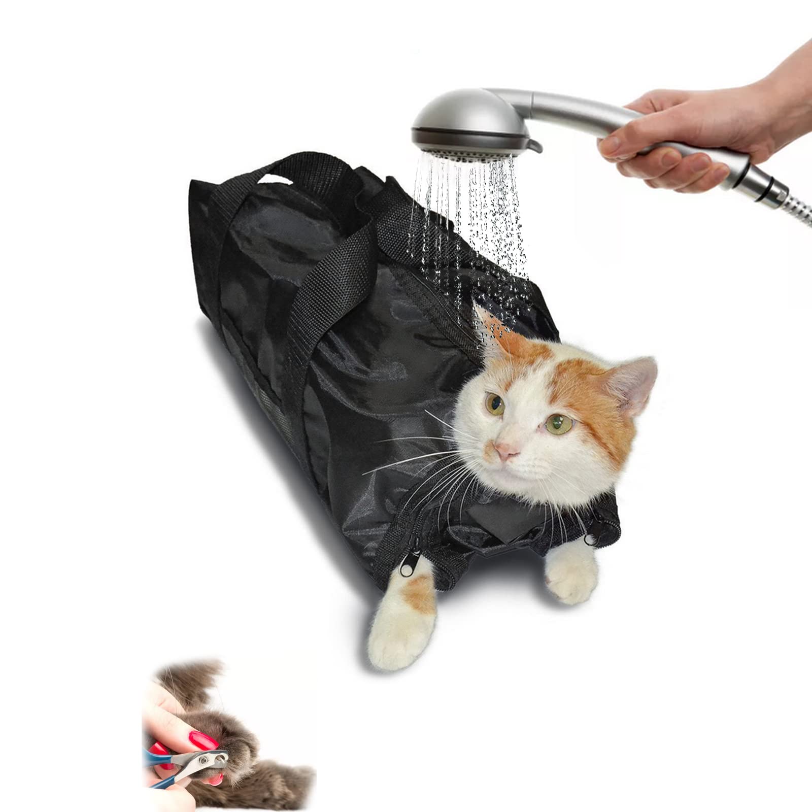 Trusty choice: If you have any questions, please contact our professional team immediately, we will answer you within 24 hours.Function: Three zippers in the back for easy access to the hinter paws and rear parts.The neck and the back of this cat bondage bag are designed so that they are adjustable and can be adjusted as required so that your cat can easily bathe at home.Information about the size: This cat care pocket measures 48 x 50 cm in flat condition, fits for 6.8 - 11.3 kg of cats.Suitable for most kittens and puppies.Before buying, please measure the size of your pet in accordance with the data from the following instruction.Nice bathing partners: Mesh panel lets water switch on and off when swimming.Perfect choice to swim and maintain cats.Prevents you to bite your pet when washing and prevents your cat from making noises on special days.Nail trim: Two front zippers enable the front paws to be cleaned and cutting nails, which makes it easy for them to trim cat nails.Vertrauenswürdige Wahl: Bei Fragen kontaktieren Sie bitte sofort unser professionelles Team, wir werden Ihnen innerhalb von 24 Stunden antworten. Funktion: Drei Reißverschlüsse hinten für einfachen Zugang zu den Hinterpfoten und Hinterteil. Der Hals und die Rückseite dieser Katzenfesseltasche sind so konzipiert, dass sie verstellbar sind und nach Bedarf angepasst werden können, damit Ihre Katze leicht zu Hause baden kann. Informationen zur Größe: Diese Katzen-Pflegetasche misst 48 x 50 cm in flachem Zustand, passt für 6,8 - 11,3 kg Katzen. Geeignet für die meisten Kätzchen und Welpen. Bitte messen Sie vor dem Kauf die Größe Ihres Haustieres sorgfältig gemäß den Daten aus dem folgenden Anleitungsbild. Nette Badepartner: Mesh-Panel lässt Wasser beim Baden ein- und ausschalten. Perfekte Wahl zum Baden und Pflegen von Katzen. Verhindert, dass Sie beim Waschen Ihres Haustieres gebissen werden, und verhindert, dass Ihre Katze an besonderen Tagen unzeitnah Geräusche macht. Nageltrimmung: Zwei Front-Reißverschlüsse ermöglichen die Reinigung der Vorderpfoten und das Schneiden von Nägeln, wodurch es einfach für Sie ist, Katzennägel zu trimmen.SOONHUA Katzen Glooming Tasche zum Baden von Katzen, verstellbare Katzen Dusche,Netztasche,Badetasche,Anti-Kratzer, atmungsaktiv,Rückhaltetasche,Katzentasche für Reinigung,Fellpflege, Baden