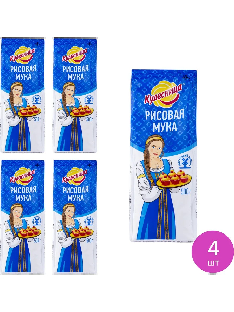 Кудесница Мука рисовая 500г, для выпечки, здоровое (комплект из 4 шт)