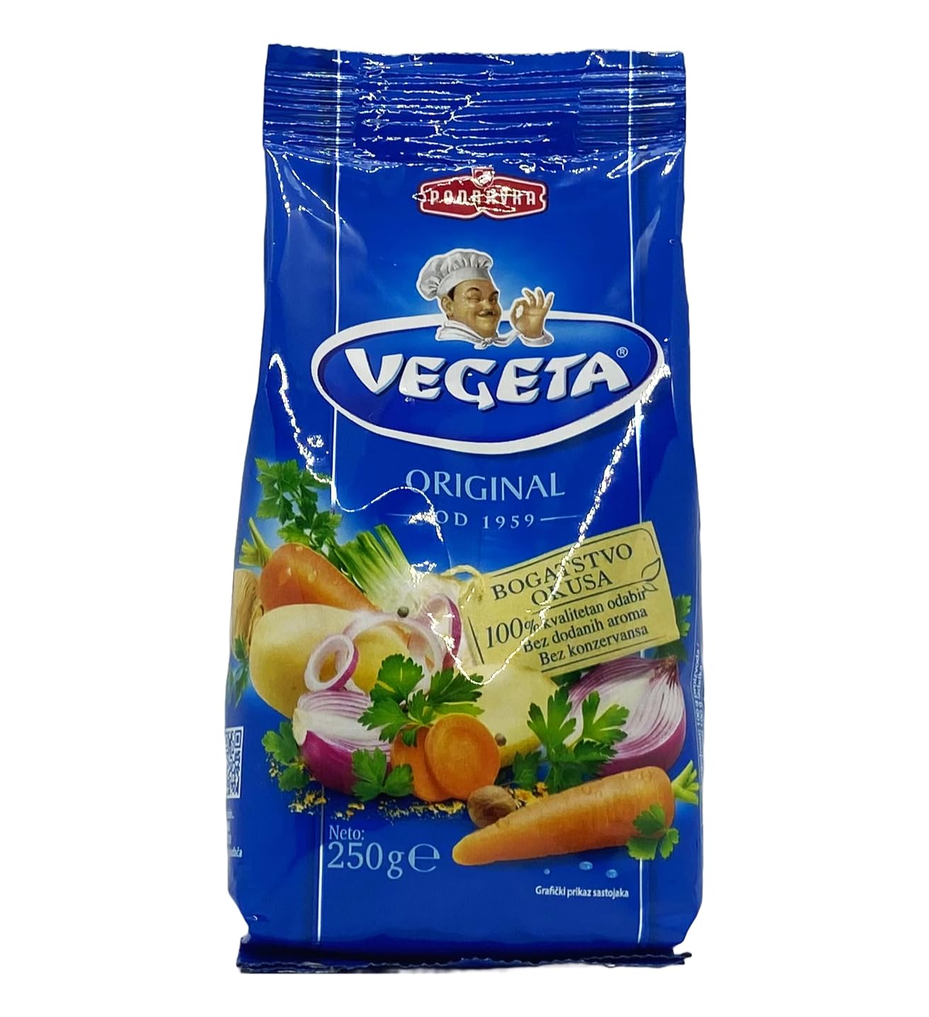 Vegeta – enhance the flavor of food with Vegeta. Vegeta is a universal food supplement. It contains a variety of dried vegetables in a unique and original combination of vegetables and natural spices. Vegeta can be added to roasting or marinating dishes. It is used to enhance the flavor of meat, vegetables, and other types of food. INGREDIENTS Table salt, dried vegetables 15.5 (carrot, parsnip, potato, onion, celery, parsley leaf), flavor enhancers (monosodium glutamate, disodium inosinate), sugar, spices, corn starch, color (riboflavin)