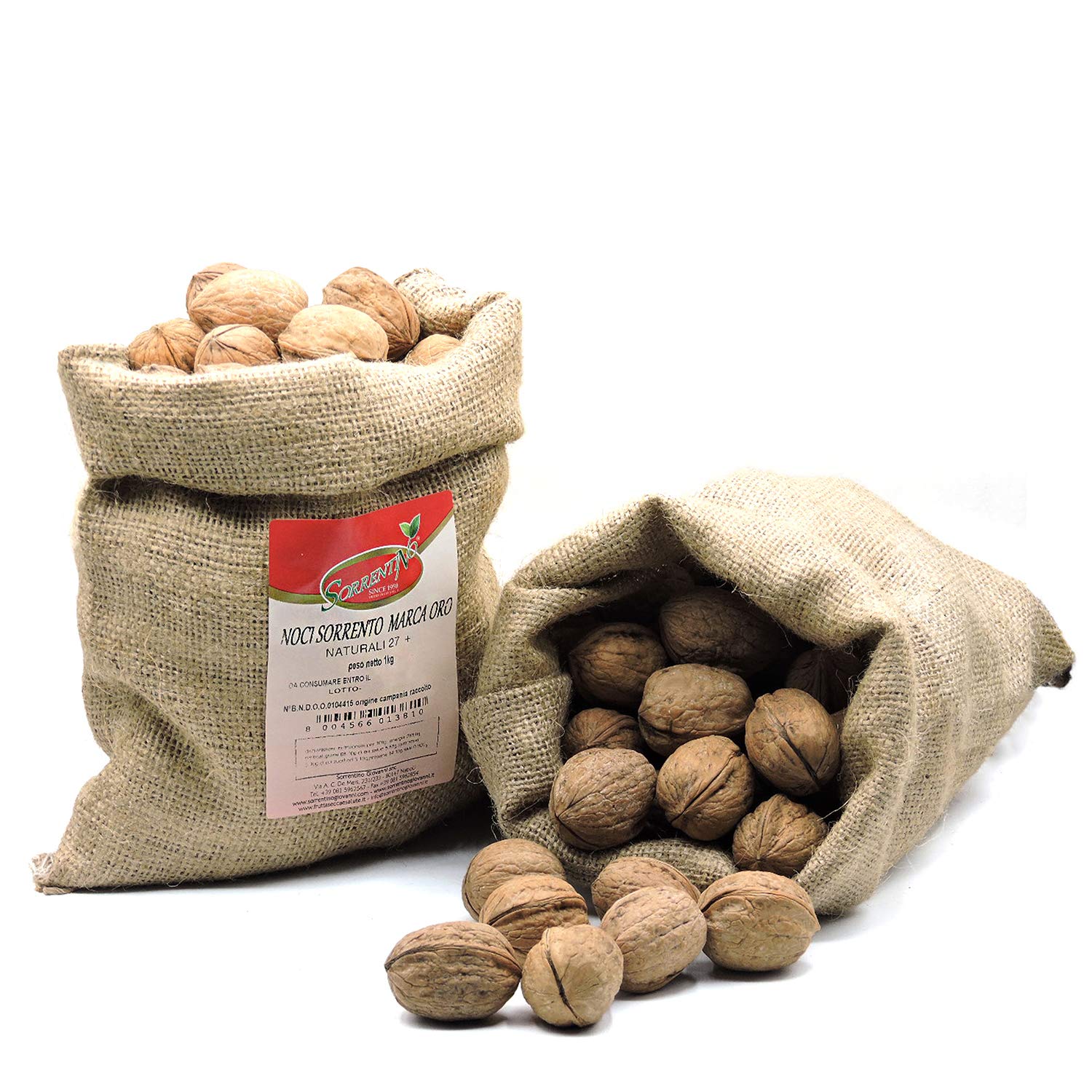 Sorrentino Noci Eco-Friendly Sorrento Shell - 1 kg Juta Bag - Gold Brand - Environmentally Free Plastic - CALIBRO 27 - Made in Italy - Sorrento