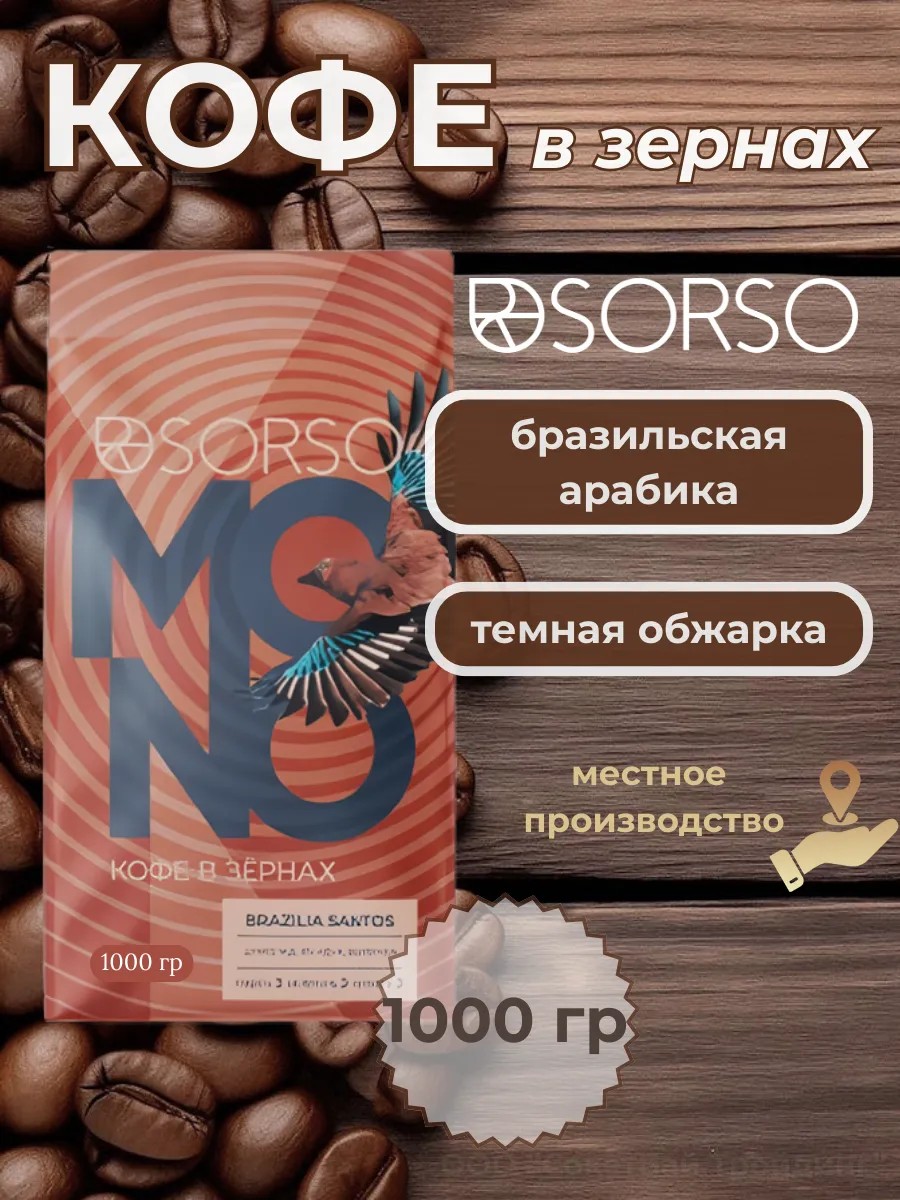 Sorso Кофе в зернах SORSO Brazilia Santos (темная обжарка) 1000г.