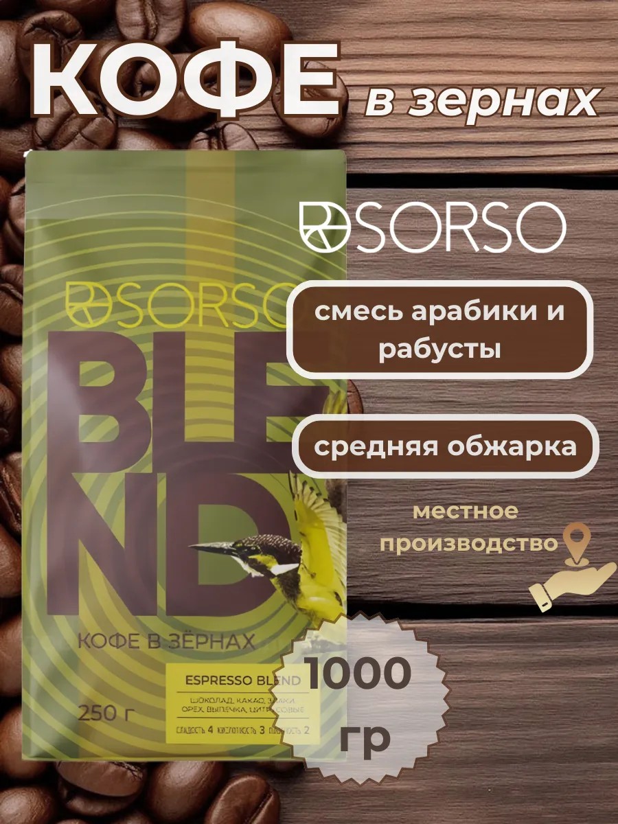 Преимущества зернового кофе Sorso Espresso Blend Citrus 1000 г: