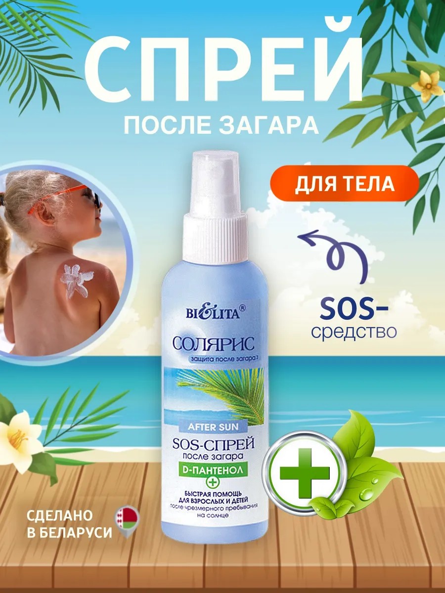 | Полное наименование товара | SOS - спрей после загара с D-пантенолом "Быстрая помощь для взрослых и детей" (145 мл.) Солярис Белита |
