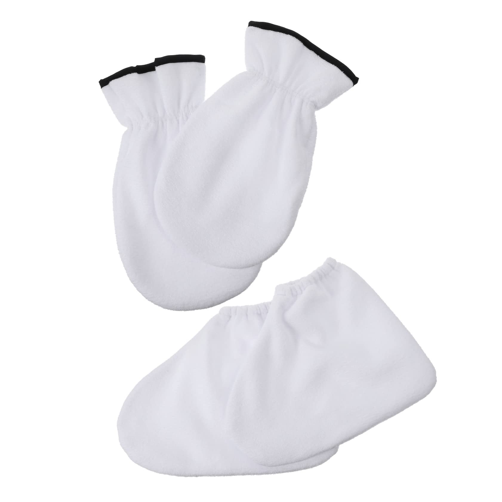 Package List: 1 pair of foot covers, 1 pair of hand covers. Features: - Size: Approximately 30.00 x 23.00 x 1.00 cm 11.79 x 9.04 x 0.39 inches (wax foot bags). - Material: Polyester, flannel foot mask socks. - Easy to care for, fully washable and reusable, easy to clean, durable, long-lasting waxing accessories. - Retains heat and provides better protection, maximizing the benefits of paraffin bath spa socks. - Made of polyester and flannel, not easily torn, good heat retention effect. - One size fits most, and the socks will fit most people's feet. - Put these on to sleep and wake up to beautiful, smooth hands and feet. : Supplies work very well for paraffin wax baths, hot wax therapy, and wax foot treatments. Foot covers: Apply moisturizing cream or lotion to your hands or feet, and use these for a better effect. Spa socks: Or you can use them for hand and foot care.