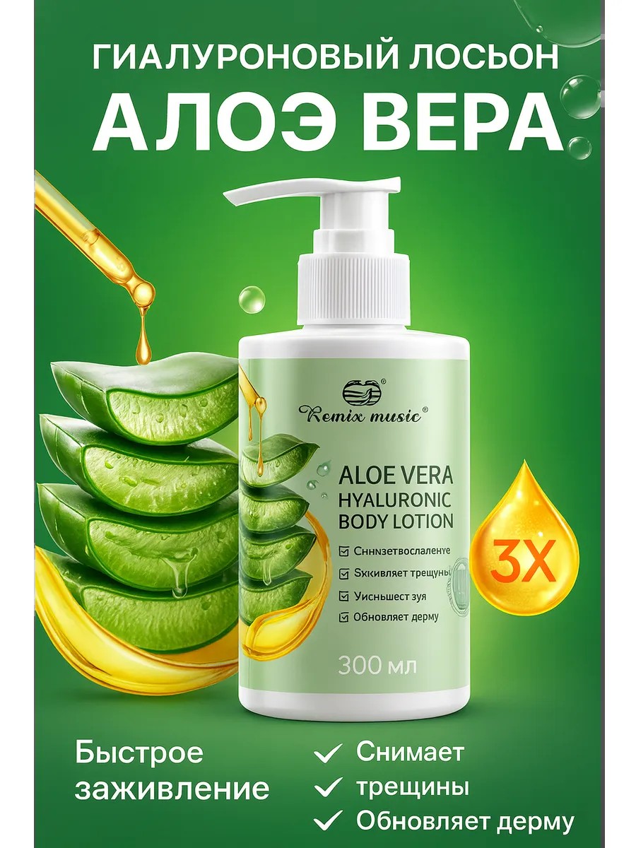 Гиалуроновый лосьон для тела c алоэ вера 300 мл — это универсальный увлажняющий лосьон для всех типов кожи с богатым питательным составом и лёгкой текстурой. Формула 2× гиалуроновая кислота и 3× коллаген глубоко насыщает влагой, восстанавливает эластичность, устраняет чувство стянутости и шелушения, попадая в топ-выдачу по запросам «глубокое увлажнение 24 часа», «лосьон с гиалуроновой кислотой», «лосьон с коллагеном».