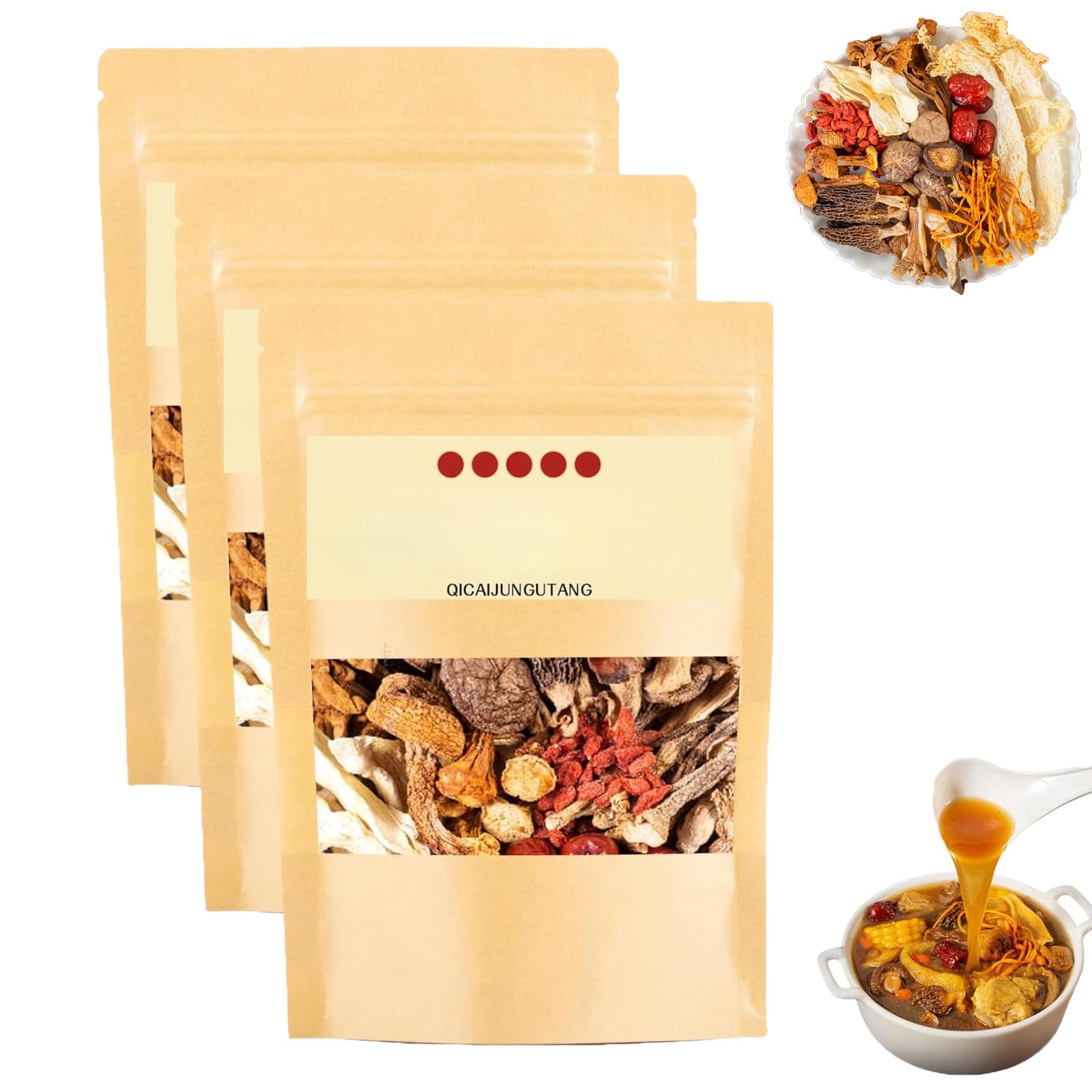 Soup Package of 11 Types of Mushrooms Dry Abalone Nutritious Mushroom Soup Bag Nutritious Mushroom and Herb Soup Set QICAIJUNGUTANG 11 Types Mushroom Soup Packets 45g/Bag (3Pcs)