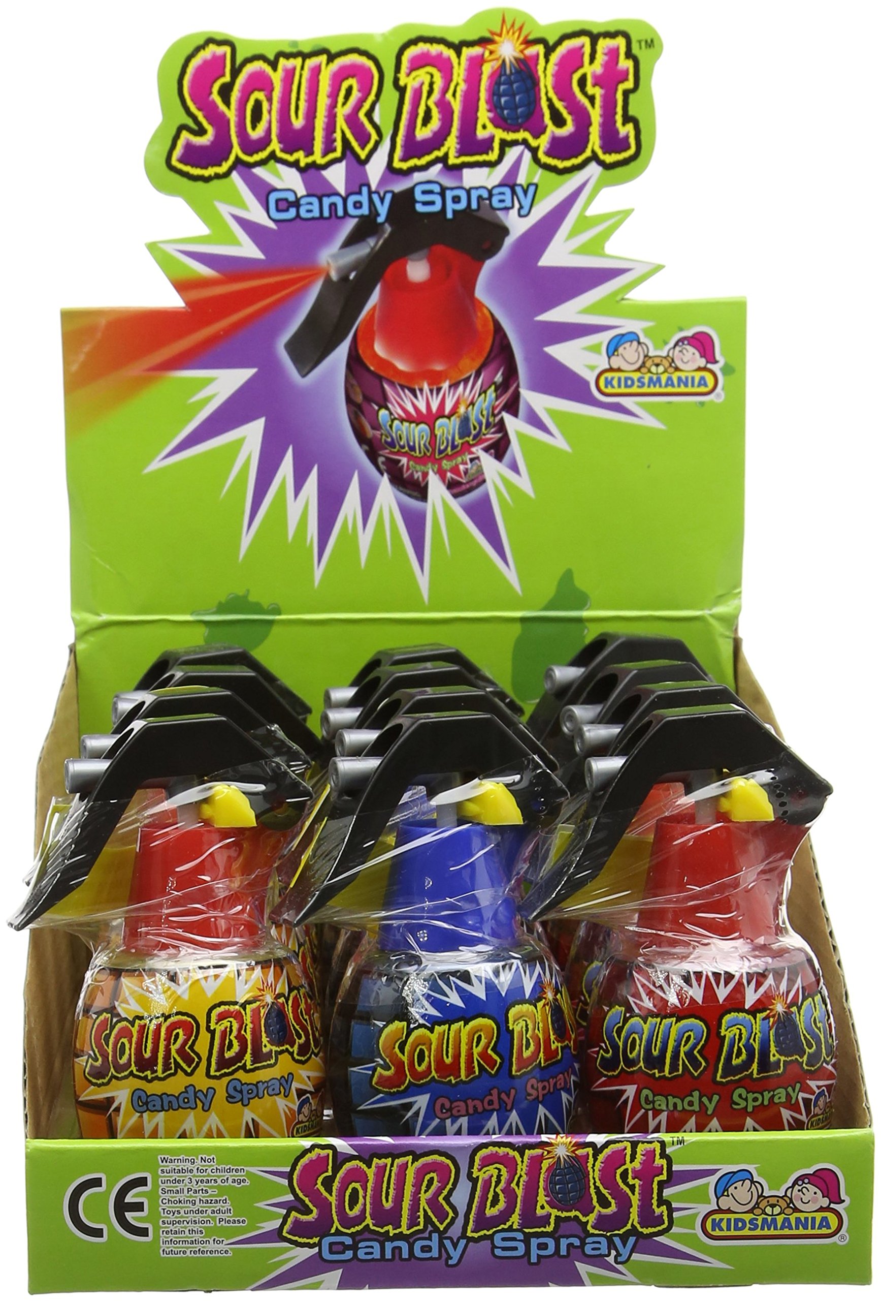 SOUR BLAST CANDY SPRAY INGREDIENTS Water, glucose syrup, sugar, acidity regulator: citric acid; flavourings, preservative: e211. SAFETY WARNING sytay away from eye contact BOX CONTAINS Each Box Contains 1 x Box of 12 Candy With Toy Sweets See more