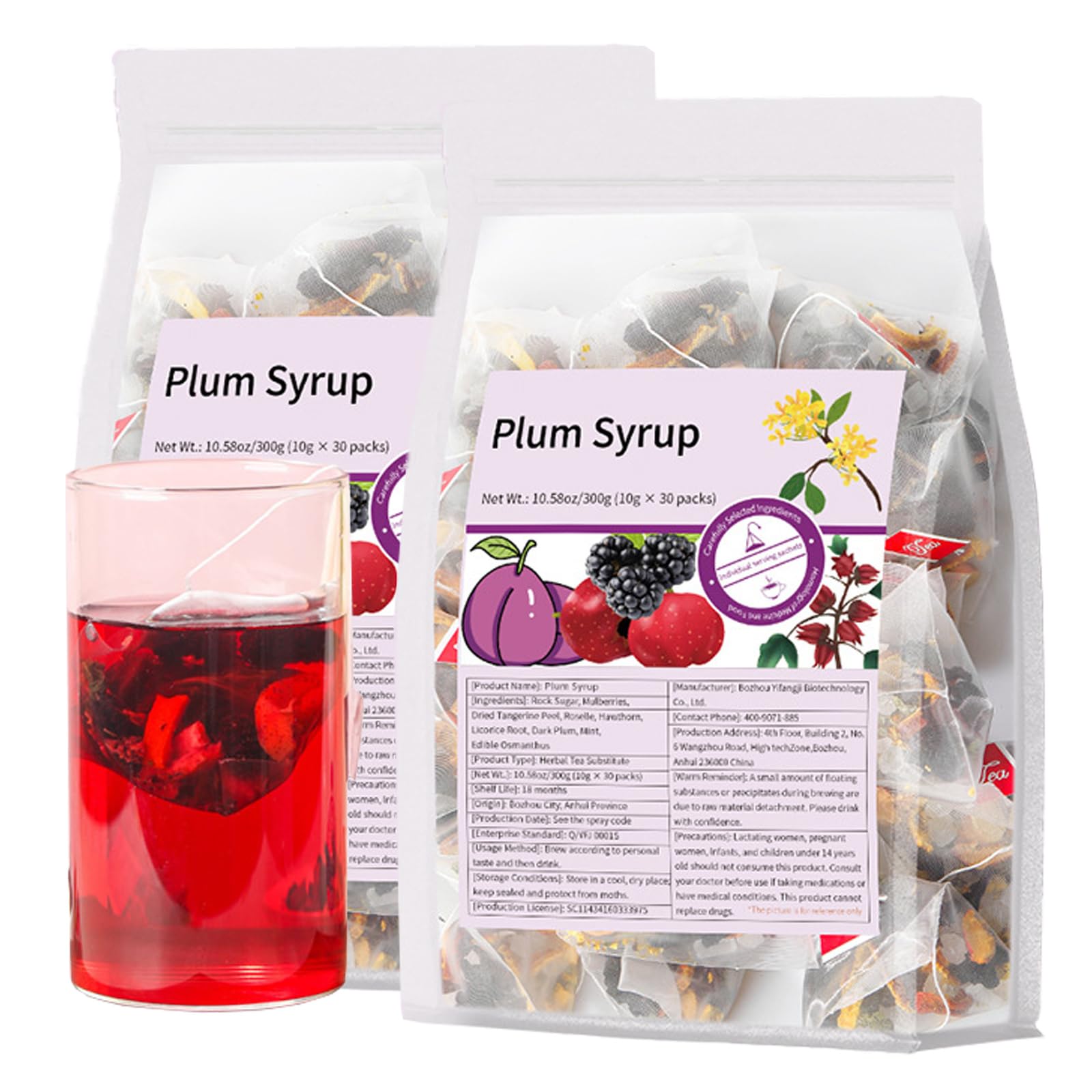 Sour Plum Soup Tea bags, appetizing and thirst-quenching, with a sweet and sour taste, 30 Individually Wrapped Bags (2pcs)