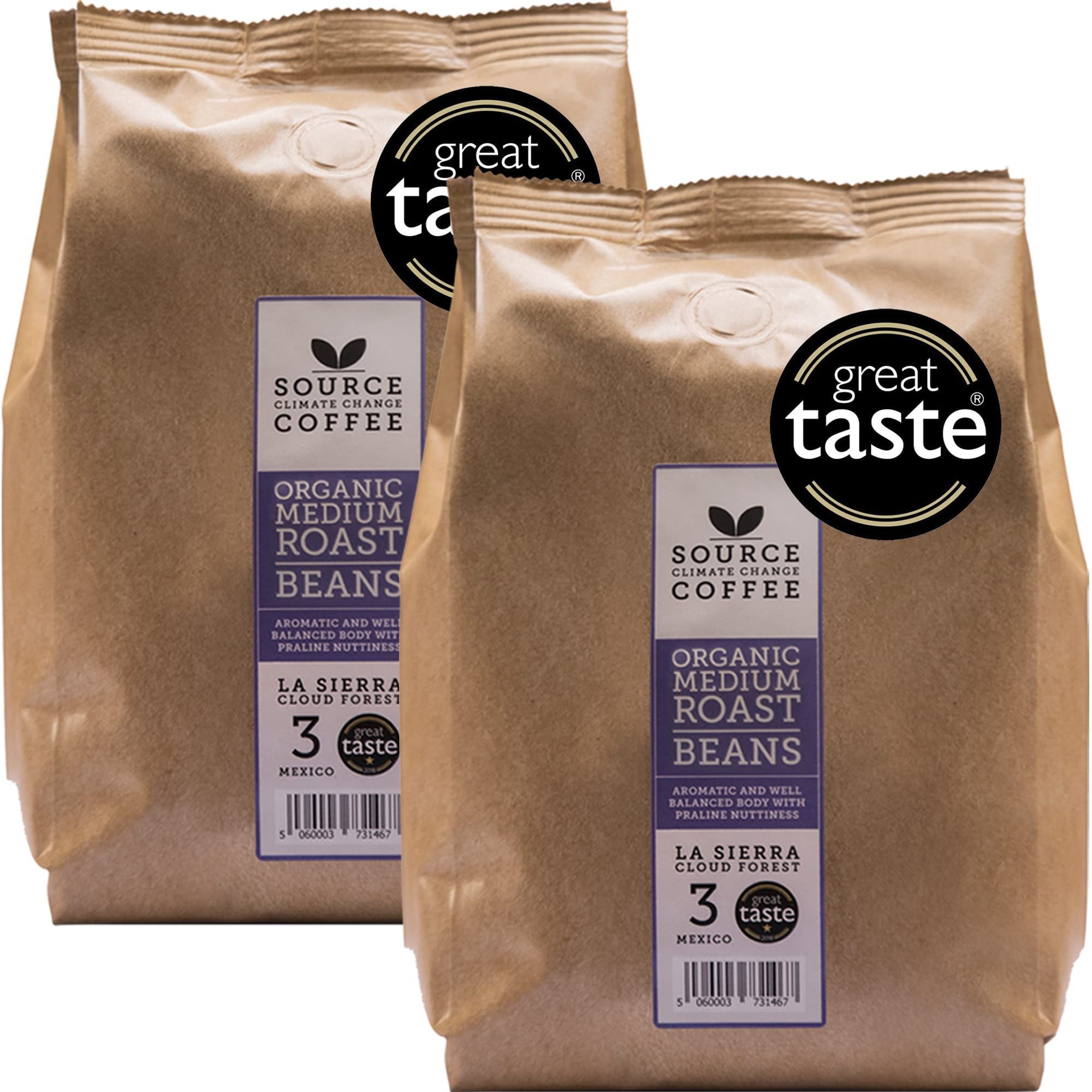 Source Climate Change Coffee Award Winning Organic Medium Roast Mexico Single Origin Whole Coffee Beans Bag, 1kg 604565253811