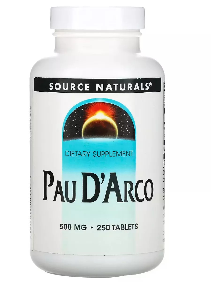 Бад Source Naturals, По д'Арко, 500 мг, 250 таблеток Source Naturals, Pau D'Arco, 500 mg, 250 Tablets Дополнительный бонус Pau D Arco известен своими противогрибковыми свойствами и борется с Candida кора муравьиного дерева является болеутоляющим и противовоспалительным средством.