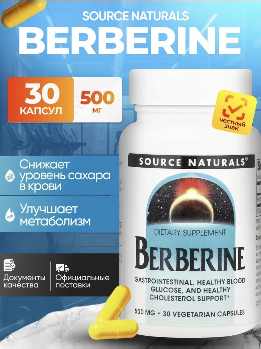 Берберин от Source Naturals - это уникальная растительная добавка на основе экстракта барбариса. В упаковке 30 капсул с высокой концентрацией действующего вещества (500 мг). Берберин обладает доказанной эффективностью в регуляции метаболизма глюкозы и липидов, что делает его особенно ценным при метаболическом синдроме и избыточном весе. Он способствует поддержанию нормального уровня сахара в крови, улучшает липидный профиль и оказывает положительное влияние на микрофлору кишечника. Добавка также обладает противовоспалительным и антимикробным действием. Особенно рекомендуется при инсулинорезистентности, преддиабетических состояниях и в комплексных программах контроля веса. Формула Source Naturals отличается высокой степенью стандартизации и гарантированным содержанием активных компонентов.