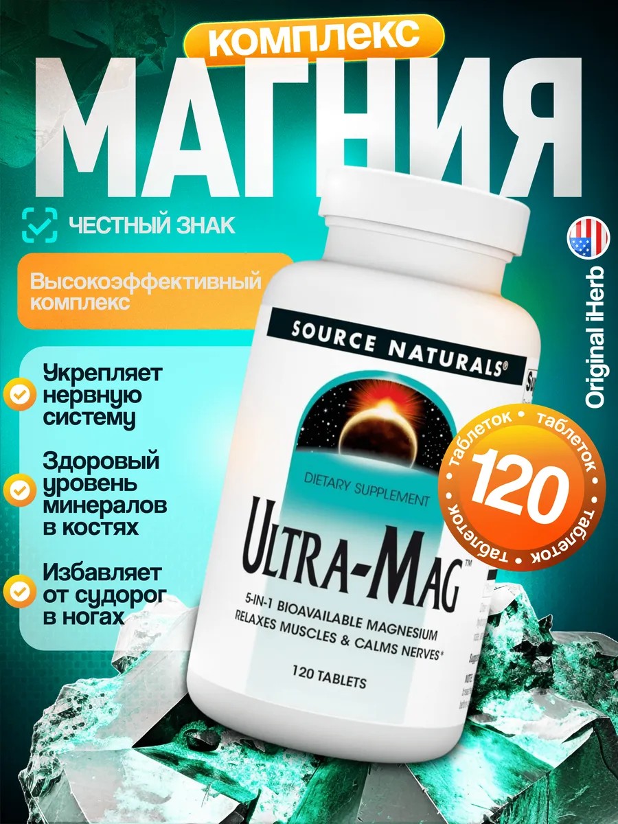 Magnesium Citrate + Vitamin B6 Ultra Mag 400 мг — это эффективная биологически активная добавка к пище, которая, благодаря наличию в составе витамин в6, хорошо усваивается женским или мужским организмом и обеспечивает его необходимыми для нормального функционирования веществами. Быстродействующие комплексные витамины премиум качества — это дополнительный источник органического магния для взрослых людей, незаменимый для поддержания здоровья, отличного самочувствия, спокойствия и уверенности в себе. Витаминный комплекс Ультра-Маг с цитратом магния и Б6 оказывает общеукрепляющее, противовоспалительное и успокаивающее действие, избавляет от мышечных болей. Бад способствует поднятию иммунитета, укреплению костей и суставов, успокоению нервов и улучшению настроения. Будучи натуральным антидепрессантом и антистрессом, магнезиум помогает нормализовать работу нервной системы, легче переносить тревогу и стресс, уменьшить проявления депрессии. Магний в6 станет надежным помощником для девушек и мужчин, регулярно испытывающих серьезные умственные нагрузки: он стимулирует работу головного мозга как в молодом, так и в пожилом возрасте, позволяет улучшить память, внимание и концентрацию, а также способствует повышению уровня энергии. Магне является сильным успокоительным средством, который может использоваться в качестве снотворного: препарат эффективен в борьбе с бессонницей и другими нарушениями сна, позволяет быстрее расслабиться и настроиться на полноценный отдых. Magne незаменим для поддержания работы сердца: он нормализует артериальное давление, предотвращает судороги, применяется для снятия спазмов сосудов. Беременным женщинам оксид магния рекомендован для профилактики возможных осложнений как у будущей мамы, так и у ребенка — перед приемом рекомендуется проконсультироваться с врачом. В составе пищевой биодобавки не содержится искусственных красителей, ароматизаторов и консервантов, что делает ее максимально безопасной в применении. В упаковке 120 таблеток, для достижения наилучшего результата рекомендуется пройти курс.
