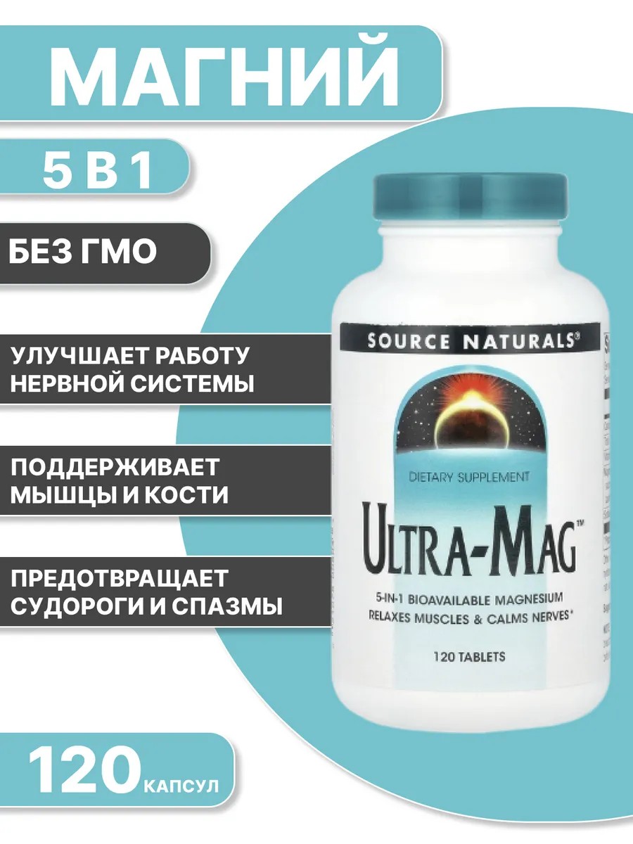 Ultra-Mag от Source Naturals — это мощный комплекс магния и витамина B6, разработанный для поддержки нервной системы и борьбы со стрессом. Магний играет важную роль в регуляции нервных импульсов, способствует расслаблению мышц и улучшению сна. Витамин B6, в свою очередь, участвует в синтезе нейромедиаторов, отвечающих за настроение и когнитивные функции. Регулярный прием Ultra-Mag поможет вам справиться с повышенной тревожностью, усталостью и раздражительностью, а также улучшить качество сна и общее самочувствие.