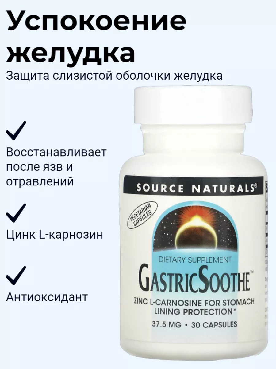 В добавке GastricSoothe используется соединение цинка и L-карнозина, которое успокаивает и защищает слизистую оболочку желудка. L-карнозин цинка также действует как антиоксидант, который выводит свободные радикалы и помогает собственной системе организма в восстановлении здоровья и целостности клеток желудка.
