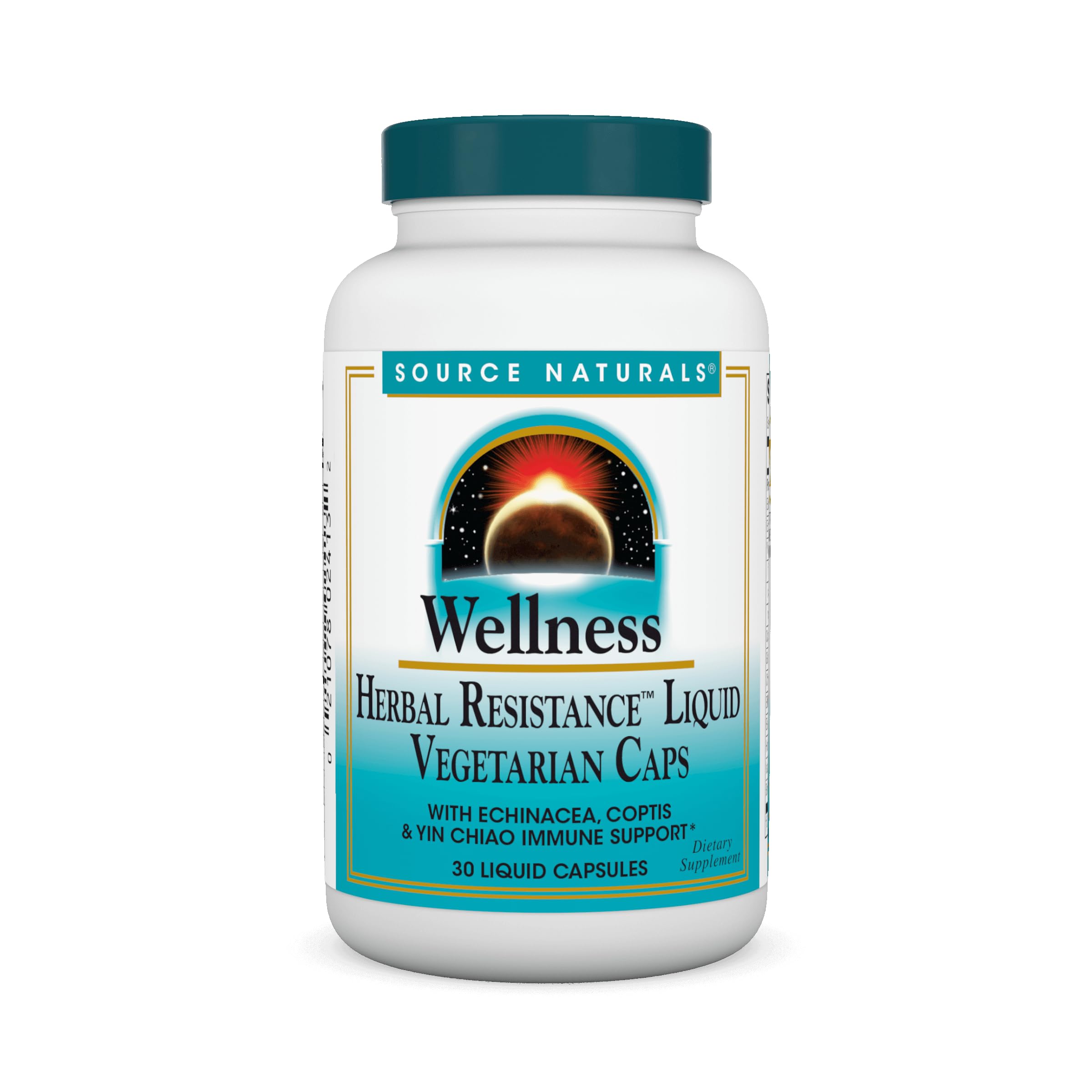 Source Naturals Wellness Herbal Resistance Liquid Immune Defense Supplement & Immunity Booster with Echinacea, Elderberry & Yin Chiao* - 30 Vegetarian Capsules 30 Count (Pack of 1)