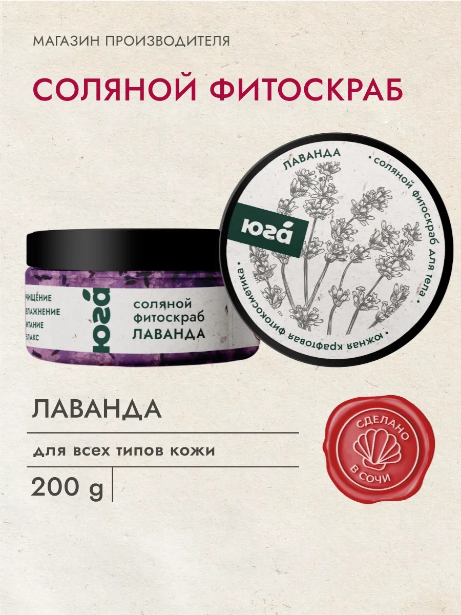 Соляной фитоскраб для тела релакс Лаванда антицеллюлитный натуральный