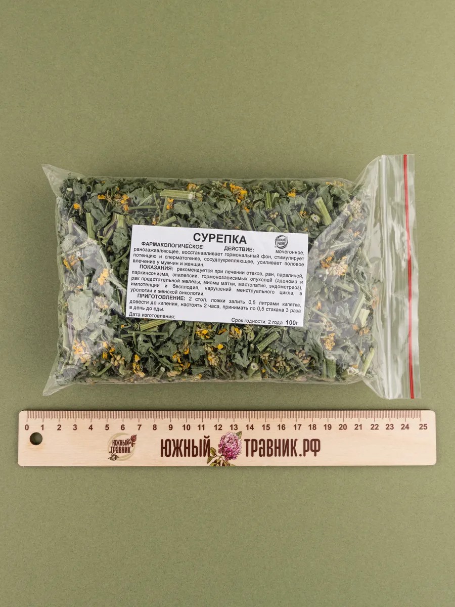 Сурепка мочегонное, ранозаживляющее, восстанавливает гормональный фон, стимулирует потенцию и сперматогенез, сосудоукрепляющее, усиливает половое влечение у мужчин и женщин. Рекомендуется при лечении отеков, ран, параличей, паркинсонизма, эпилепсии, гормонозависимых опухолей (аденома и рак предстательной железы, миома матки, мастопатия, эндометриоз), импотенции и бесплодия, нарушений менструального цикла, в урологии и женской онкологии.