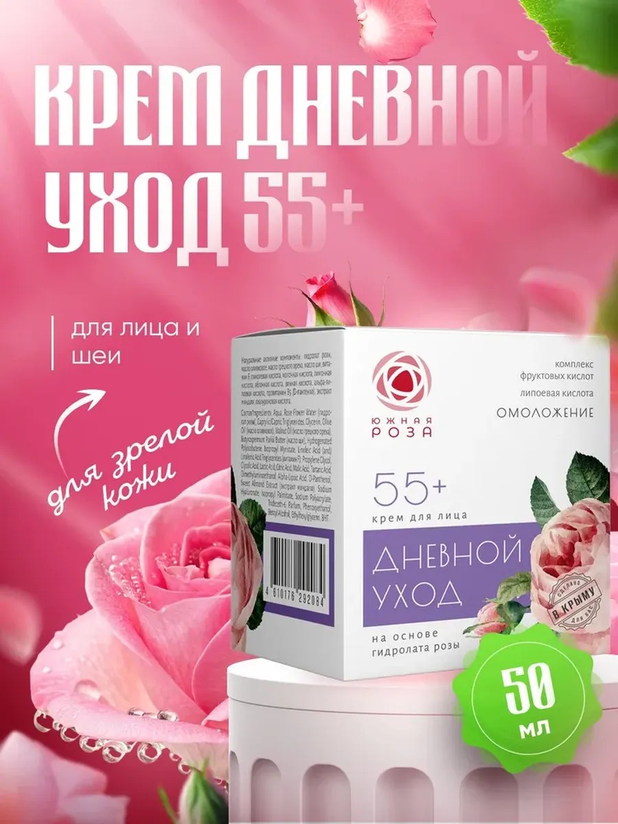 Крем для лица, Дневной уход 55+ с Крымской розой
