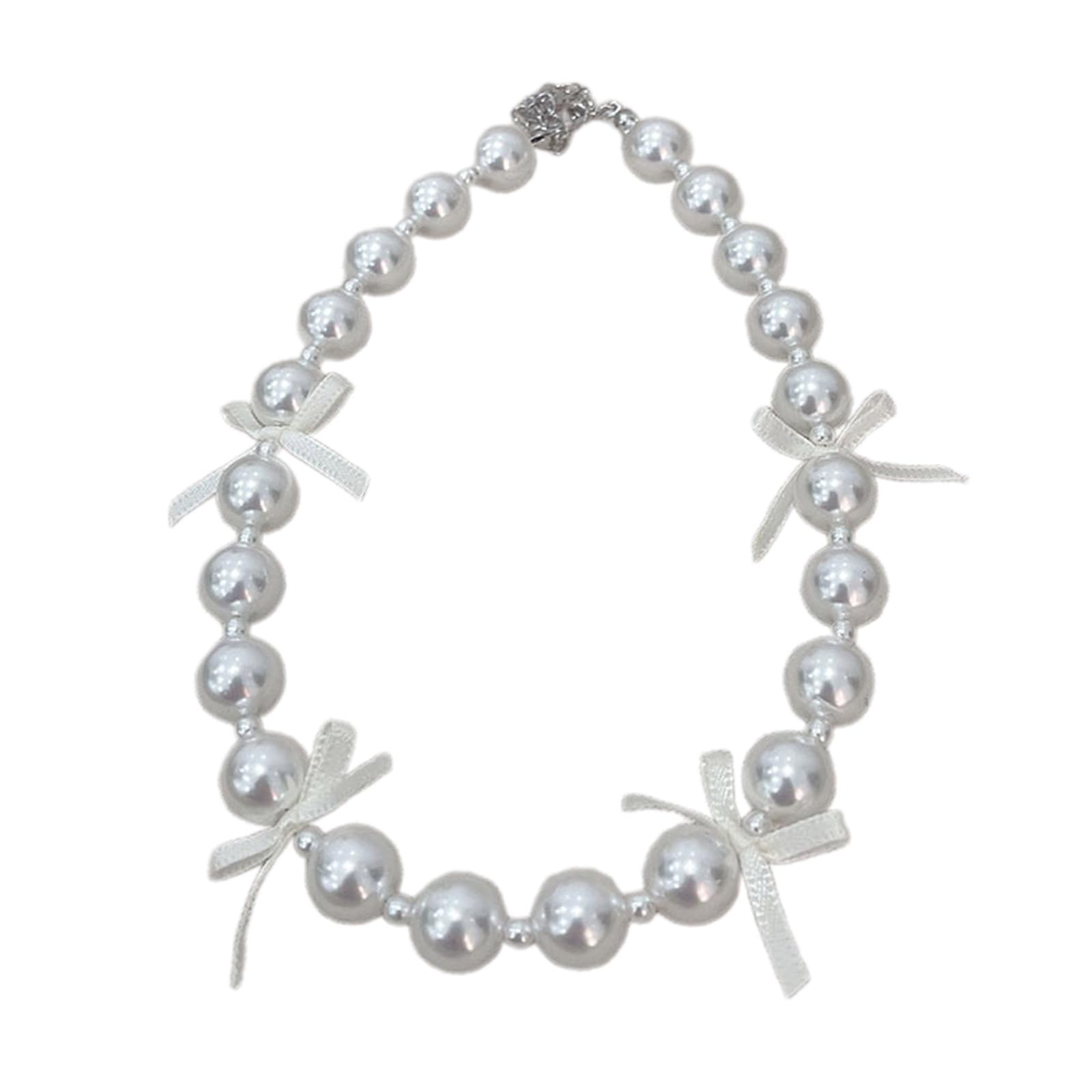 SOUTHJIELING Modische Halskette mit Schleifen-Anhänger, handgefertigt, Perlen, Halskette, Schleife, Schlüsselbeinkette für Frauen und Mädchen Weiß