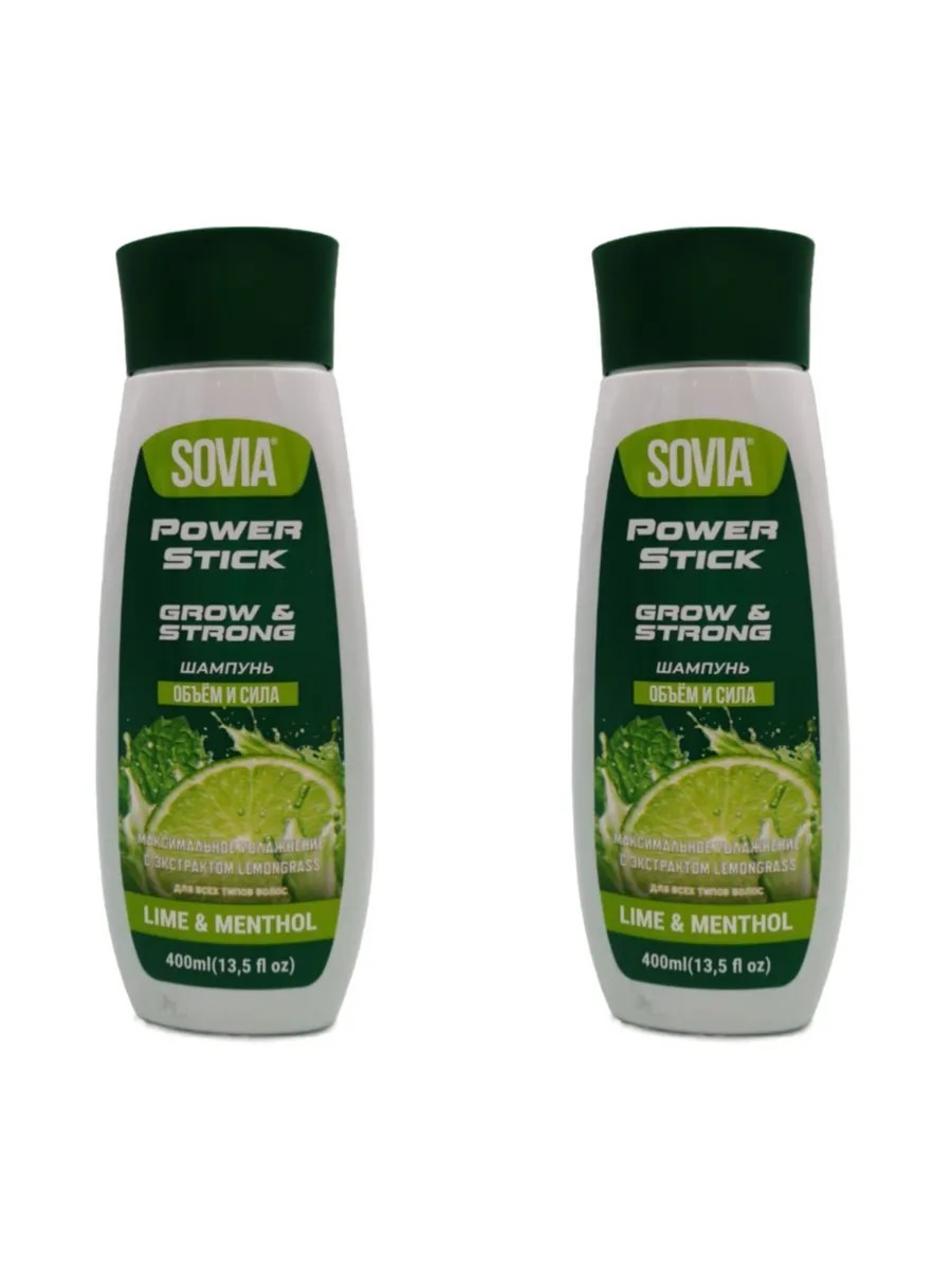Sovia Шампунь мужской 2 штуки по 400 мл. Объём и сила, Лайм-Ментол