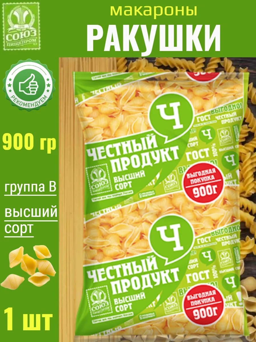 Ракушки "Честный продукт" изготавливаются исключительно из муки высшего сорта и воды, они очень питательны и содержат большое количество клетчатки. Макароны прекрасно подходят в качестве гарнира к основному блюду, а также используется в качестве самостоятельного блюда при добавлении сытных ингредиентов. Макароны, благодаря мягкой пшенице, быстро варятся и при этом прекрасно сохраняют форму и вкусовые свойства при варке.