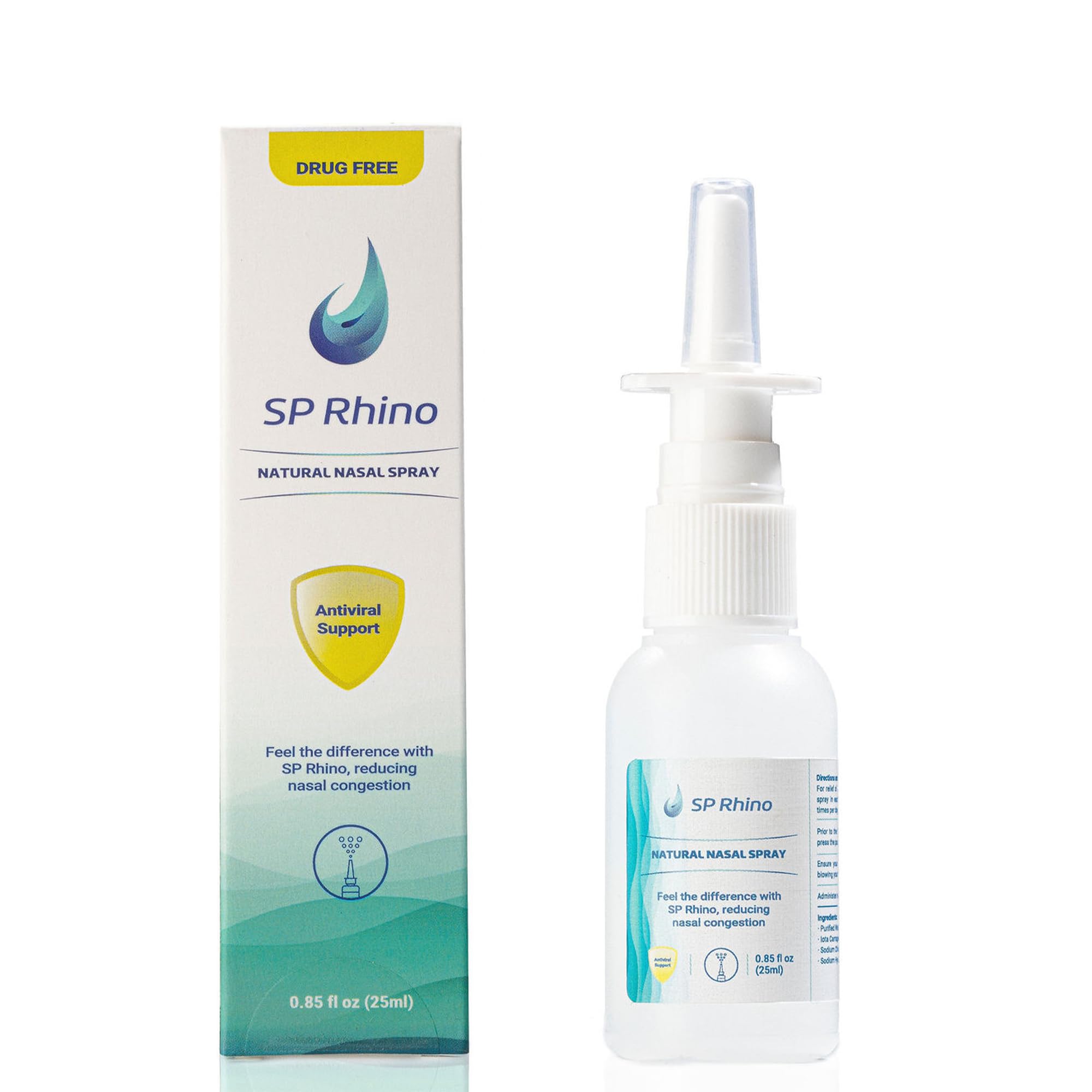 : This nasal spray decongestant is ideal for routine sinus care, offering a comfortable and efficient solution for managing seasonal allergies, environmental irritants, or daily nasal hygiene. It ensures you maintain clear, moisturized, and healthy nasal passages daily without irritation or adverse effects. : The nose passageways should be cleared by gently blowing your nose before using the SP Rhino prime pump by holding the nose spray allergy relief bottle upright and pumping one or more times until the sinus nasal spray solution is dispensed. As antiviral nose spray you breathe in through your nose, insert the nozzle into your nostril and press the pump completely. Spray each nostril 2-4 times and use it at least twice a day. : We developed a patented natural nasal spray solution that reduces inflammation, and naturally opens the airways, and anti viral nasal spray has powerful oral and upper respiratory health benefits because natural nasal has a five-carbon structure that reduces contaminant adhesion on nasal tissues, reducing swelling and allergy symptoms. : With our all-natural nasal spray allergy relief, you can reduce swelling, open your airways, and reduce snoring without using steroids, drugs, or chemicals. Our all-natural severe saline nasal spray moisturizing is safe for children, non-toxic, and non-addictive. : By targeting the primary causes of nasal congestion, our nose spray will also gently clean and moisturize the sinuses. severe nasal spray will also help reduce swelling caused by pollen, pollution, contaminants, and other irritants by using our nose sprays.