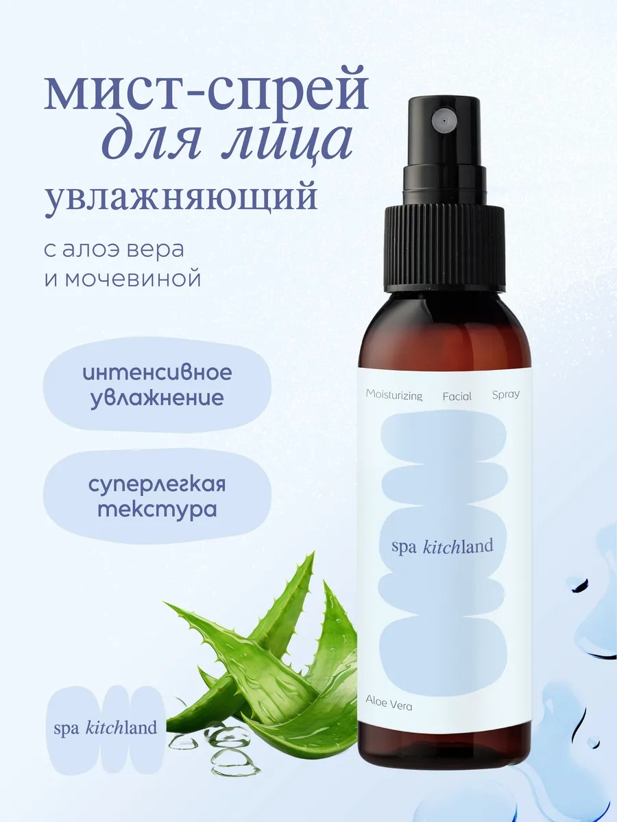 Познакомьтесь с увлажняющим и освежающим спрей-мистом для лица Spa KitchLand с алоэ вера и мочевиной – ваш верный помощник для сияющей и ухоженной кожи. Этот спрей-мист станет настоящим спасением для вашей кожи в течение дня, мгновенно увлажняя и освежая ее. Формула, обогащенная натуральным алоэ вера, известным своими успокаивающими и заживляющими свойствами, а также мочевиной, которая интенсивно увлажняет и смягчает кожу, подарит вам ощущение комфорта и свежести. Спрей-мист подходит для использования на лице, теле, руках и даже для волос, делая его универсальным средством для всей семьи. Его легкая текстура быстро впитывается, не оставляя липкости, а приятный аромат алоэ вера окутает вас свежестью и бодростью.