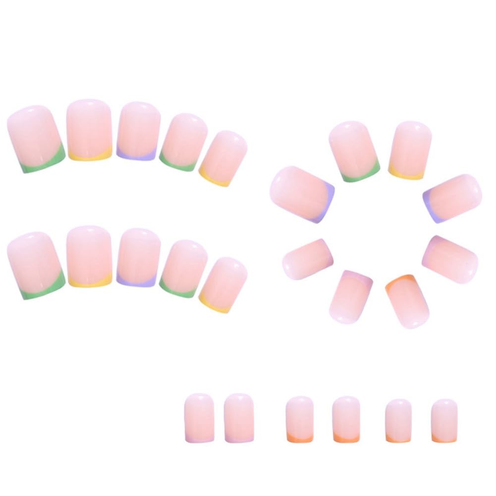 Spactz 1 Set Through Wearable Nail Wearable Press on Nails Full Cover Nail Tips Short Colourful
