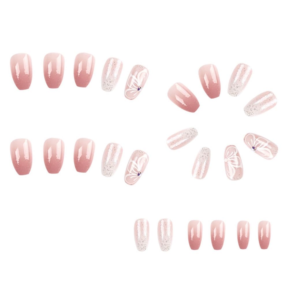 Spactz Pink Gradient Glitter Nails Gradual Change Butterfly Rhinestones Nails Full Cover Nail Tips False Nails ABS
