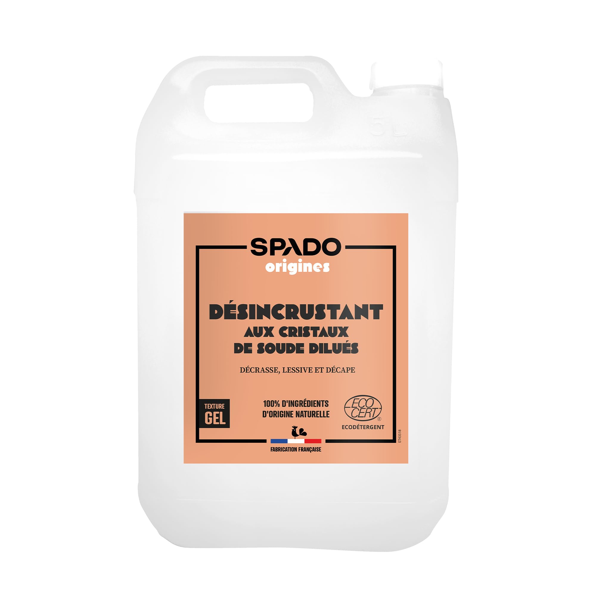 Soda crystals have many properties. Cleans, degreases, and descales everything in the house. Unclogs pipes. Softens water. Ready-to-use concentrated gel. Its gel texture allows you to target the surface to be treated, the gel clings to the surface to maximize its effectiveness. Ideal for small and large jobs: cleaning terraces, stripping paint or wallpaper, etc. Multi-purpose cleaner: bathroom (sink, shower, bathtub, toilet), kitchen (worktops, sink, hood, oven, stove, burnt pans, kitchen furniture), tiles, marble, PVC, walls, terraces, etc. Natural degreaser, fragrance-free, allergen-free, colorant-free, preservative-free. Compatible with food contact and HACCP method. Product usable for cleaning materials and objects intended to come into contact with foodstuffs (decree of September 8, 1999), provided that it is followed by rinsing with water PH: 11 0.5PRODUCTS MADE IN FRANCE: All SPADO ORIGINES products are designed and manufactured in France. Detergent certified by ECOCERT Greenlife according to the ECOCERT "Eco-detergent" standard available on ECODÉTERGENT. SPADO Origines, natural, authentic and effective products! More concentrated and innovative formulas with the addition of perfume for a clean and good-smelling household. Our range is almost entirely Ecocert certified for products that respect people and the environment. INSTRUCTIONS FOR USE: Apply to the surface to be sprayed. Leave to act for a few minutes. Rinse with clean water using a sponge. Do not apply to aluminum, raw wood, lacquered surfaces, wool, ceramic and induction hobs. GEL FORMULA ECOCERTIFIED: Its gel texture allows you to target the surface to be treated, the gel clings to the surface to maximize its effectiveness. Food contact compatible. 100 of the total ingredients are of natural origin. CLEANS, DEGREASES AND DEGREASES the entire house Ideal for small and large jobs: cleaning terraces, stripping paint or wallpaper, etc. Multi-purpose cleaner: bathroom (sink, shower, bathtub, toilet), kitchen (worktops, sink, extractor hood, oven, stove, burnt pans, kitchen furniture), tiles, marble, PVC, walls, terraces, etc. Les cristaux de soude possèdent de nombreuses propriétés. Nettoie, dégraisse, décrasse tout dans la maison. Débouche les canalisations. Adoucit l'eau. Gel concentré prêt à l'emploi. Sa texture gélifiée permet de cibler la surface à traiter, le gel s'accroche au support pour maximiser son efficacité. Idéal pour les petits et gros travaux : nettoyage de terrasses, décapage des peintures ou papiers peints… Nettoyant multi usages : salle de bain (lavabo, douche, baignoire, toilettes), cuisine, (plans de travail, évier, hotte, four, gazinière, casseroles brûlées, meubles de cuisine), carrelages, marbre, PVC, murs, terrasses etc. Dégraissant naturel, sans parfum, sans allergène, sans colorant, sans conservateur. Compatible contact alimentaire et méthode HACCP. Produit utilisable pour le nettoyage des matériaux et objets destinés à entrer en contact avec les denrées alimentaires (arrêté du 8 septembre 1999), à condition qu'il soit suivi d'un rinçage à l'eau PH : 11 0.5PRODUITS MADE IN FRANCE : Tous les produits SPADO ORIGINES sont conçus et fabriqués en France. Détergent certifié par ECOCERT Greenlife selon le référentiel ECOCERT «Ecodétergent» disponible sur ECODÉTERGENT. SPADO Origines , des produits naturel, authentique et efficaces ! Des formules plus concentrées et innovantes avec l'ajout de parfum pour un ménage propre et qui sent bon. Notre gamme est quasiment entièrement certifiée Ecocert pour des produits respectueux de l'homme et de l'environnement. MODE D'EMPLOI: Appliquer sur la surface à pulvériser. Laisser agir quelques minutes. Rincer à l'eau claire à l'aide d'une éponge. . Ne pas appliquer sur l'aluminium, le bois brut, les surfaces laquées, la laine, les plaques vitro céramiques et induction. FORMULE EN GEL ECOCERTIFIÉE : Sa texture gélifiée permet de cibler la surface à traiter, le gel s'accroche au support pour maximiser son efficacité. Compatible contact alimentaire. 100 du total des ingrédients sont d'origine naturelle. NETTOIE DEGRAISSE ET DECRASSE toute la maison Idéal pour les petits et gros travaux : nettoyage de terrasses, décapage des peintures ou papiers peints… Nettoyant multi usages : salle de bain (lavabo, douche, baignoire, toilettes), cuisine, (plans de travail, évier, hotte, four, gazinière, casseroles brûlées, meubles de cuisine), carrelages, marbre, PVC, murs, terrasses etc.