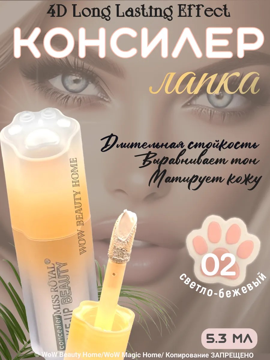 You will love the packaging design: a cap in the shape of a cat's paw adds originality and cuteness to your cosmetic arsenal. Concealer "Paw" — it's not just cosmetics; it's a way to highlight your beauty and self-confidence.