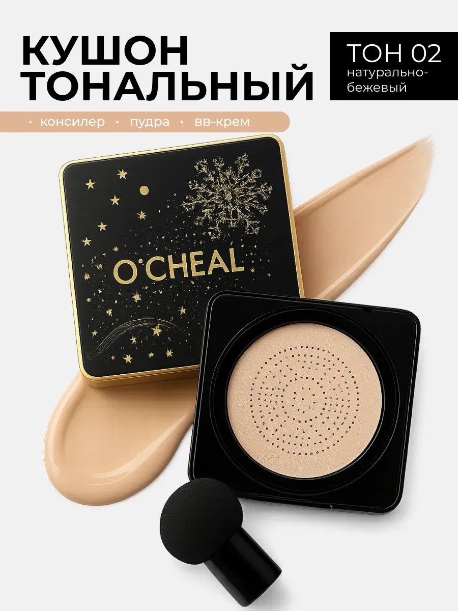 Уникальный кушон для лица с тонирующим пигментом, обогащенная экстрактом муцина улитки поможет выровнять тон кожи и замаскировать несовершенства. Тональный крем кушон имеет приятную флюидную текстуру, естественно смотрится и не ощущается на коже. Корейский кушон для лица сматирующим эффектом. кушон крем избавит в течении дня от жирного блеска. Особая пуховка-спонж обеспечивает равномерное нанесение и экономичный расход средства. Наносить бб крем bb следует на увлаженную кожу! В этом случае крем ложится тонким ровным слоем и не забивает поры, при этом обеспечивает хорошее покрытие. Рекомендуется закрепить результат пудрой для лица, для большей стойкости. Кушон устойчив к воздействию высоких температур и влажности. НАБОР Кушон пудра - это средство, которое объединяет в себе тональный крем, пудру и BB крем. корейская косметика имеет легкую муссовую текстуру, универсальный оттенок, который подстраивается под тон кожи. Средство отлично выравнивает и увлажняет кожу лица. Кушон - это 3 в одном: консилер, увлажняющая мягкая пудра, bb крем. Относится к классу уходовой косметики - питает и смягчает кожу. В наборе имеется спонжик 1 шт. Перекрывает тёмные круги под глазами, покраснения, пигментацию и другие несовершенства. кушон крем Благодаря невесомой текстуре тон получается ровный, не скатывается и не забивается в поры. Можете закрепить лёгкой прозрачной пудрой. Если вы сможете соблюсти все этапы - очищение, увлажнение, правильное нанесение декоративной косметики, у вас получится крутой профессиональный стойкий make up и мгновенный результат! Полезный, практичный и недорогой подарок для женщин, девочек. Подходит для всех типов кожи. Советуем сначала нанести на незаметный участок кожи, например, запястье руки, чтобы проверить реакцию организма. Также обращаем Ваше внимание, что конечный эффект на лице зависит от типа, цвета, природы и особенностей Вашей кожи. Каждый человек уникален, и мы не можем гарантировать, что данное средство будет подходить всем идеально на 100 %.