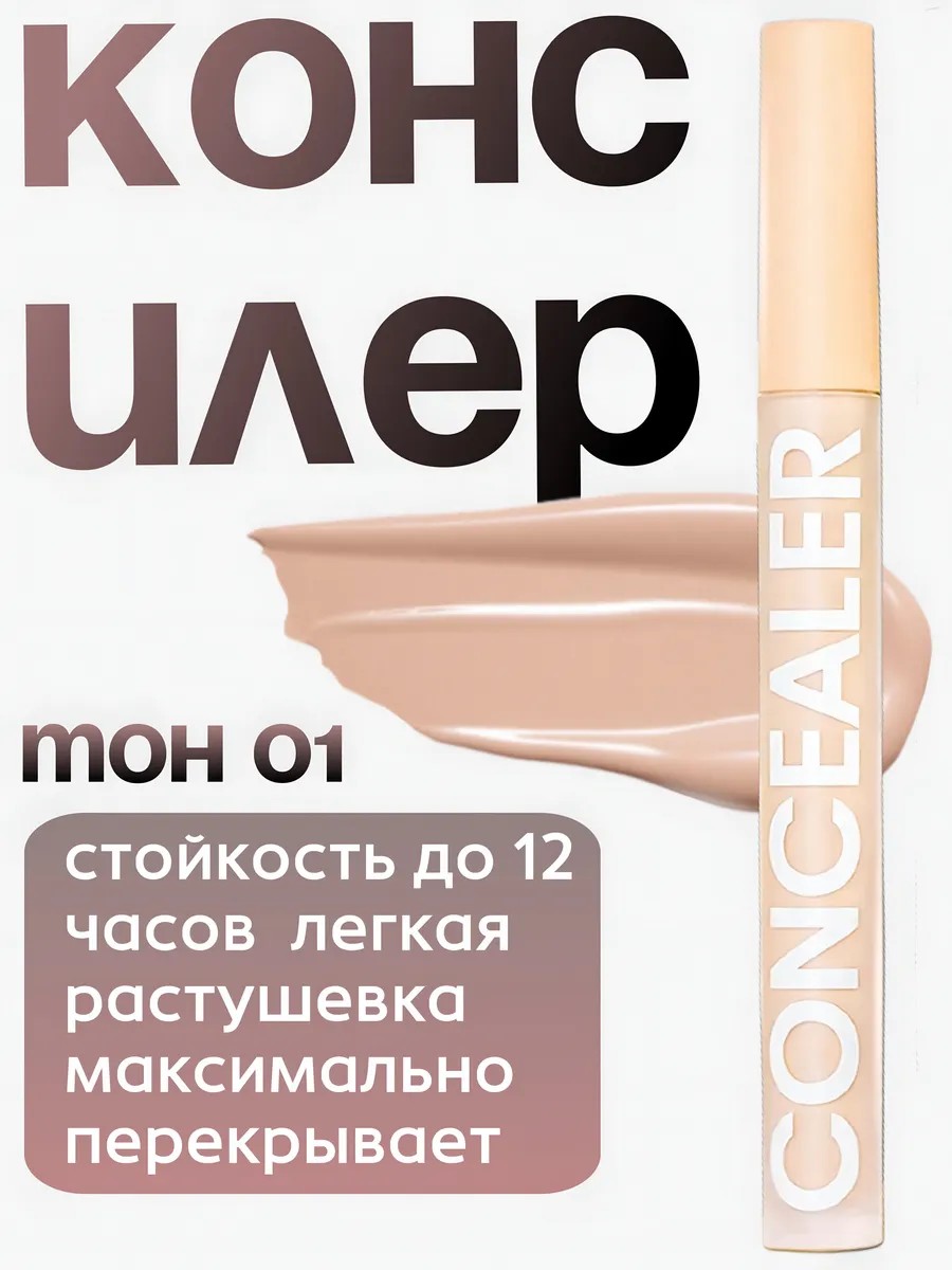 С помощью консилера можно добиться эффекта подтянутости и открытого взгляда без использования филлеров! Он ложится гладким, незаметным слоем и не забивает поры, что делает его универсальным выбором для девушек, взрослых женщин и девочек-подростков. В нашей новой коллекции представлены два популярных оттенка: бежевый (01) и светло-бежевый (02).