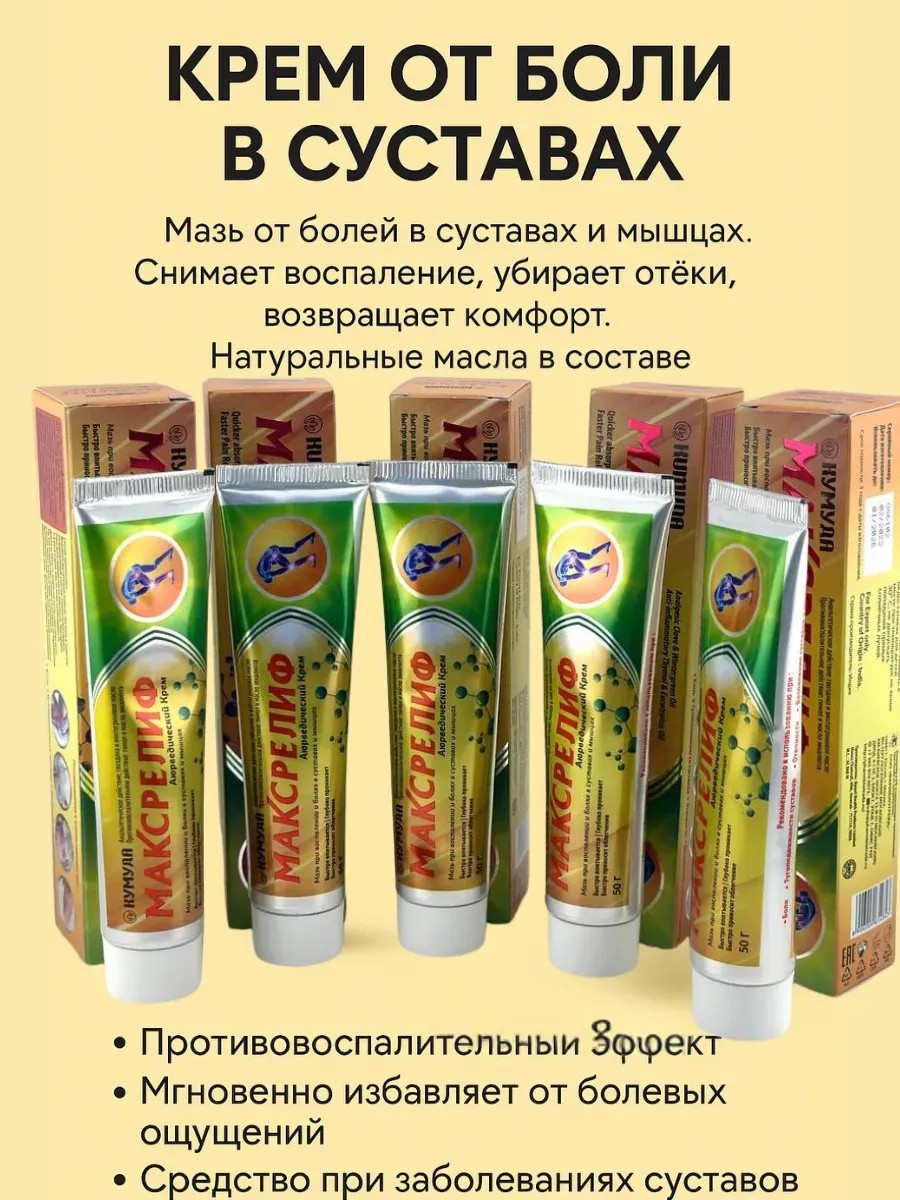 МаксРелиф – аюрведический крем от боли в суставах и мышцах, 50 г