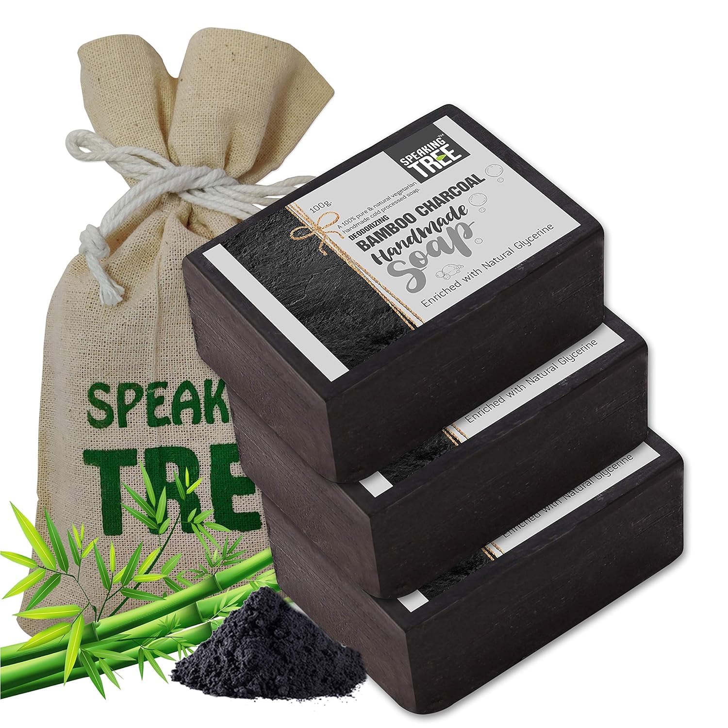 Speaking Tree Specially Formulated and Cold Processed Deodorizing Bamboo Charcoal Handmade Soap to Cleanse Skin Naturally and A Beautifully Refreshing Aroma (Pack of 3)