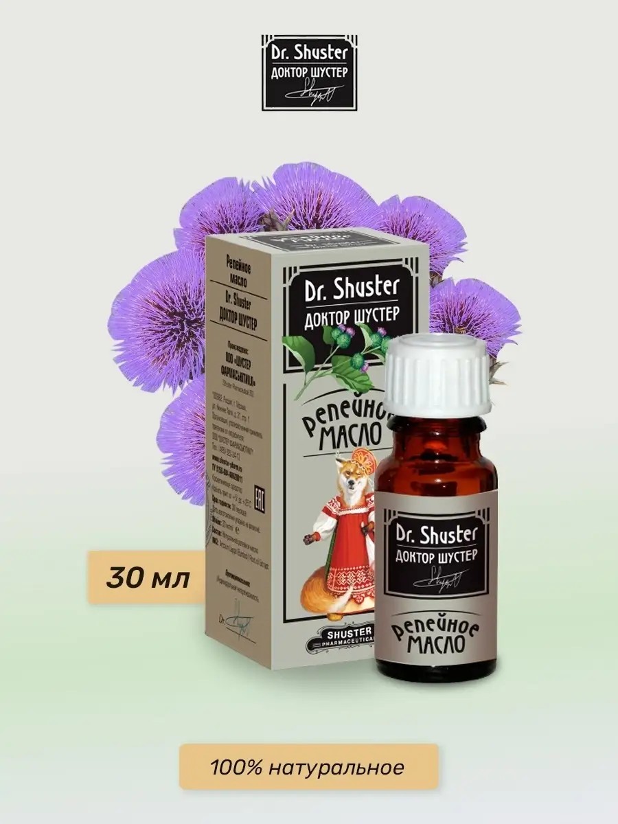 Масло косметическое репейное для укрепления и роста волос / ресниц DR.SHUSTER ДОКТОР ШУСТЕР 30 мл. Репейное масло активизирует рост волос, борется с жирной себореей кожи головы, укрепляет волосяные луковицы, уничтожает перхоть и устраняет сальность головы; питает и укрепляет волосы, усиливает их рост, останавливает процессы выпадения волос, устраняет перхоть, зуд и сухость кожи головы, восстанавливает поврежденную структуру волос. Подходит для: Репейное масло для волос от выпадения. питание. уход за бородой и усами. для бровей и ресниц.