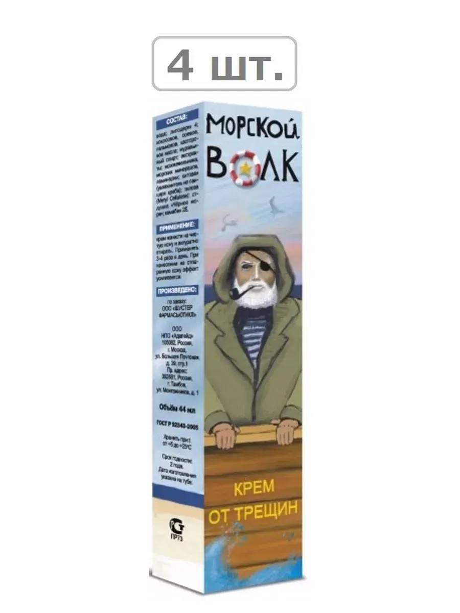 Морской Волк Крем-бальзам 44мл. Состав: муравьиный спирт, можжевельник, экстракты морских минералов и водорослей,. Показания: для ухода за пересушенной и потрескавшейся кожей, повреждённой агрессивным воздействием окружающей среды (холод, вода, ветр, жара, солнце), а так же нехваткой питательных веществ.. Действие: способствует заживлению трещин и ранок на пальцах и ладонях рук, подошвах и пятках ног.