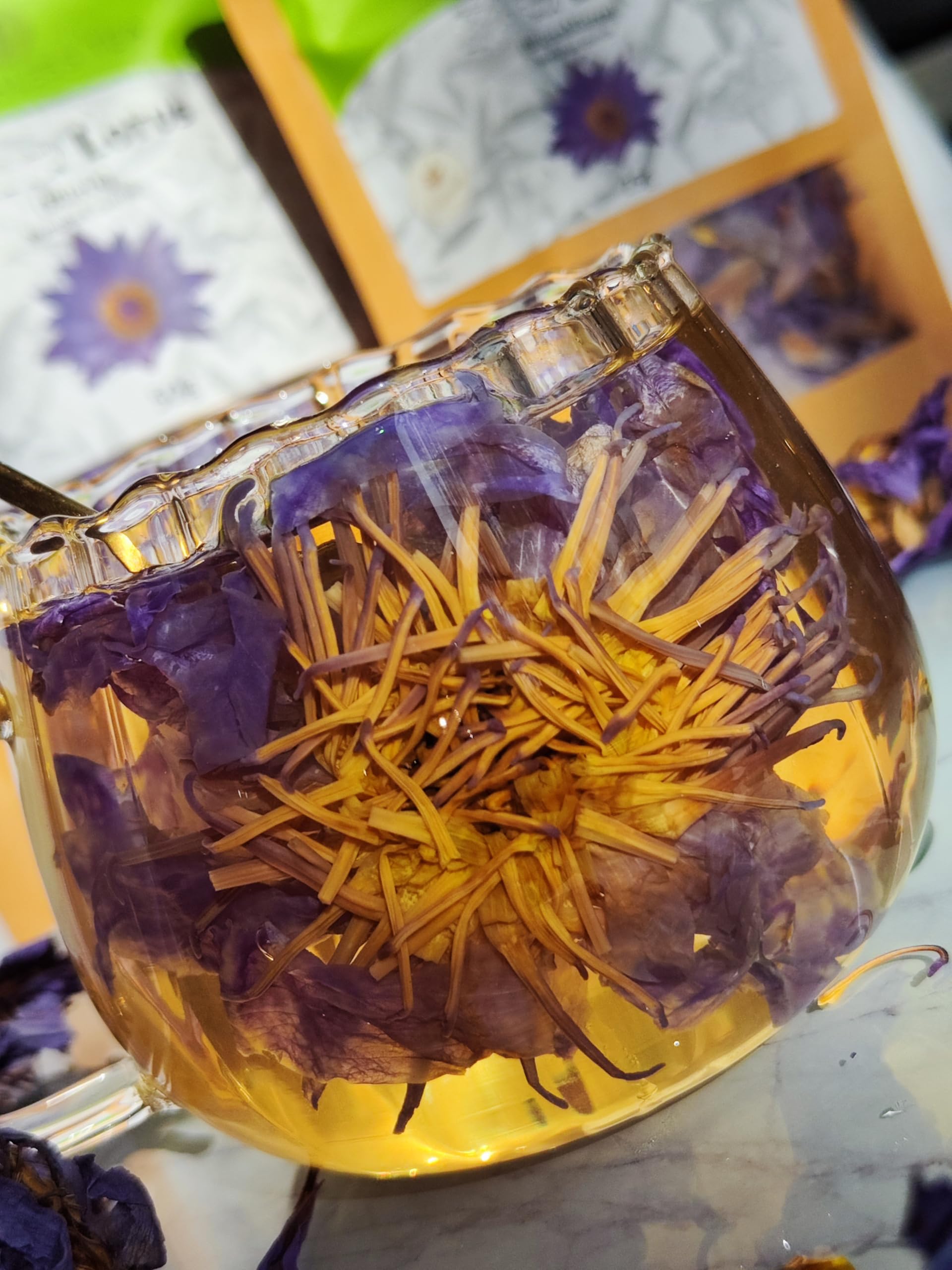 Tea made from the dried flowers of this exotic plant has a long history as both an herbal remedy and a source of pleasure. This tea is distinguished by its unique properties that can promote both physical and mental health. One of the most striking properties of this tea is its relaxing effect. A cup of this tea can help relieve stress and promote overall relaxation of the body. This can improve sleep quality and alleviate sleep disturbances, leading to more restful nights. In addition to its calming effect on the body, this tea also has a remarkable ability to improve mood. By releg endorphins, it can increase general well-being and even alleviate mild depressive moods. In some cultures, this tea is also valued for its aphrodisiac properties. It can increase libido and enrich the sexual experience, which can help couples establish a deeper connection. In summary, this tea is a fascinating herbal remedy that can promote both physical and mental health. Its versatile benefits range from stress reduction and sleep support to mood enhancement and aphrodisiac effects. INSTRUCTIONS 1. Boil water. 2. Add tea to the water. 3. Let it steep for a few minutes. 4. Strain and serve. SAFETY WARNING No known safety warnings for this product. See more