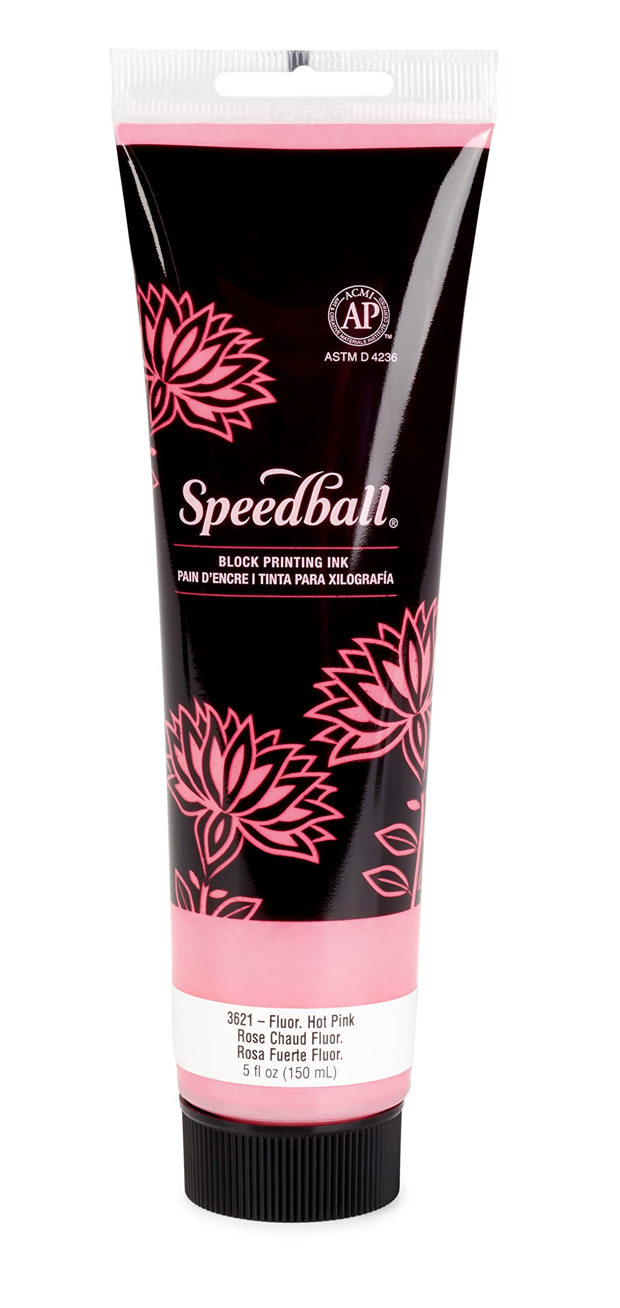 Speedball Fabric Screen Printing Ink Set 4oz Fluorescent Colors: Hot Pink Lime Green Orange & Blue