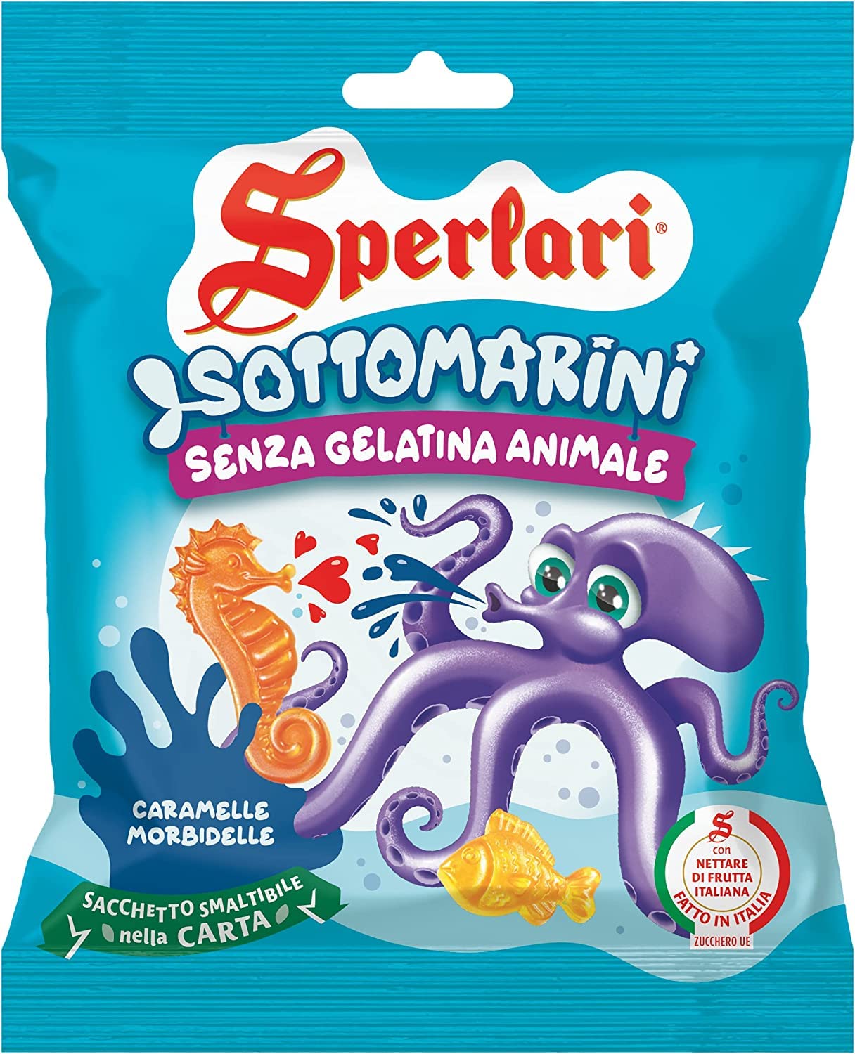 Description: Discover Sperlari Sottomarini, a world of gentle and friendly sea creatures, made with delicious Italian peaches, pears, raspberries, and strawberries, and without animal gelatin. Packaged in a disposable paper bag. Only natural flavors and no artificial colors. Gluten-free. Ingredients: Sugar, glucose syrup, starch, modified starch, water, acidifiers (citric acid, lactic acid), peach nectar 2 (peach puree 1 , water, sugar), strawberry puree 2 (1 , water, sugar), pear puree 2 (water, sugar), raspberry puree 2 (water, raspberry puree 0.9 , sugar), natural flavorings, vegetable oils (coconut, rapeseed), concentrates (black carrot, spirulina, saflor), acidity regulator (potassium tartrate), glazing agent (carnauba wax), color (lutein). Safety instructions: Contains starch, contains an acidifier, contains an acid regulator, contains a color and a glazing agent. Allergen information: Gluten-free. INGREDIENTS Ingredients: sugar, glucose syrup, starch, modified starch, water, acidifier (citric acid, lactic acid), peach nectar 2 (peach puree 1 , water, sugar), strawberry nectar 2 (strawberry puree 1.1 , water, sugar), pear nectar 2 (puree 1 , water, sugar), raspberry nectar 2 (water, raspberry puree 0.9 , sugar), natural flavorings, vegetable oils (coconut, rapeseed), concentrates (black carrot, spirulina, safflower), acidity regulator (potassium tartrate), glazing agent (carnauba wax), color (lutein).Sperlari Sottomatini Kids Lot de 3 bonbons aux fruits doux et étincelants en forme d'animaux marins, pêche, poire, framboise et fraise, pour enfants – Sacs de 40 gDESCRIPTION DU PRODUIT DESCRIPTION DU PRODUIT Description : Découvrez Sperlari Sottomarini, un monde d'animaux marins doux et amicaux, préparé avec de délicieuses pêches, poires, framboises et fraises italiennes et sans gélatine animale. Emballé dans un sac en papier jetable. Uniquement des arômes naturels et sans colorants artificiels. Sans gluten. Ingrédients : sucre, sirop de glucose, amidon, amidon modifié, eau, acidifiant (acide citrique, acide lactique, acide lactique), nectar de pêche 2 (purées de pêche 1 , eau, sucre) 2 (purée de fraise 1, 1 , eau, sucre) 2 (purée de poire 1 eau, sucre, framboise, eau, sucre, framBeernectar 2 (eau, purée de framboise 0,9 , sucre), arômes naturels, huiles végétales (coco, colza, concentrés (carotte noire, spiruline, saflor), régulateur d'acidité (tartrate de potassium), agent d'enrobage (cire de carnauba), colorant (lutéine). Consignes de sécurité : contient de l'amidant, contient un acidifiant, contient un régulateur d'acide, contient un colorant et un agent d'enrobage sur les allergènes : gluten_free. INGRÉDIENTS Ingrédients sucre, sirop de glucose, amidon, amidon modifié, eau, acidifiant (acide citrique, acide lactique), nectar de pêche 2 (purée de pêche 1 , eau, sucre), nectar de fraises 2 (purée de fraises 1, 1 , eau, sucre), nectar de poire 2 (purée 1 , eau, sucre), H nectar de framboise 2 (eau, purée de framboise 0,9 , sucre), arômes naturels, huiles végétales (coco, colza), concentrés (carotte noire, spiruline, carthame), régulateur d'acidité (tartrate de potassium), agent d'enrobage (cire de carnauba), colorant (lutéine).