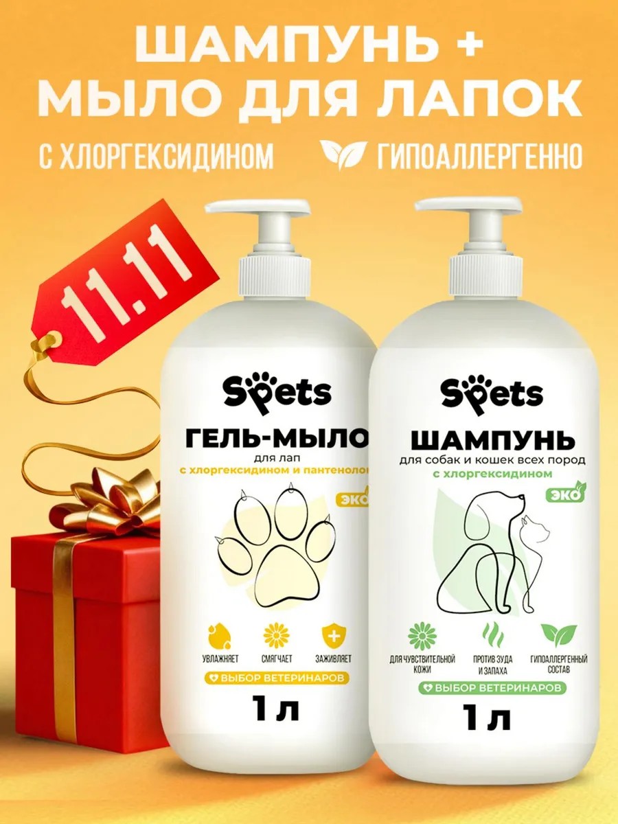 Spets Комплект шампунь для собак от запаха и гель для лап 1л+1л