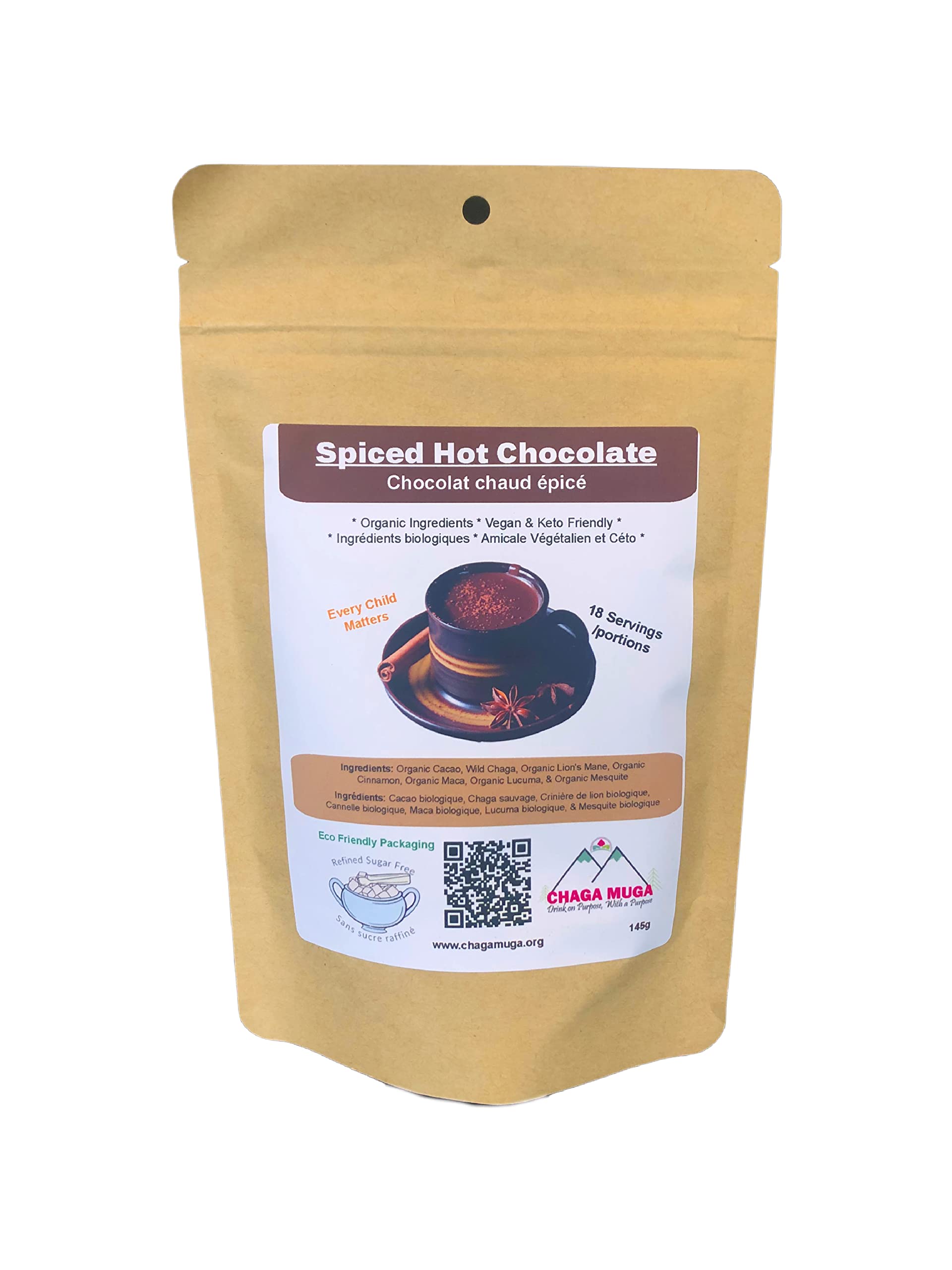 Spiced Hot Chocolate - Chaga Mushroom Organic Superfoods - Keto Vegan - 18 servings